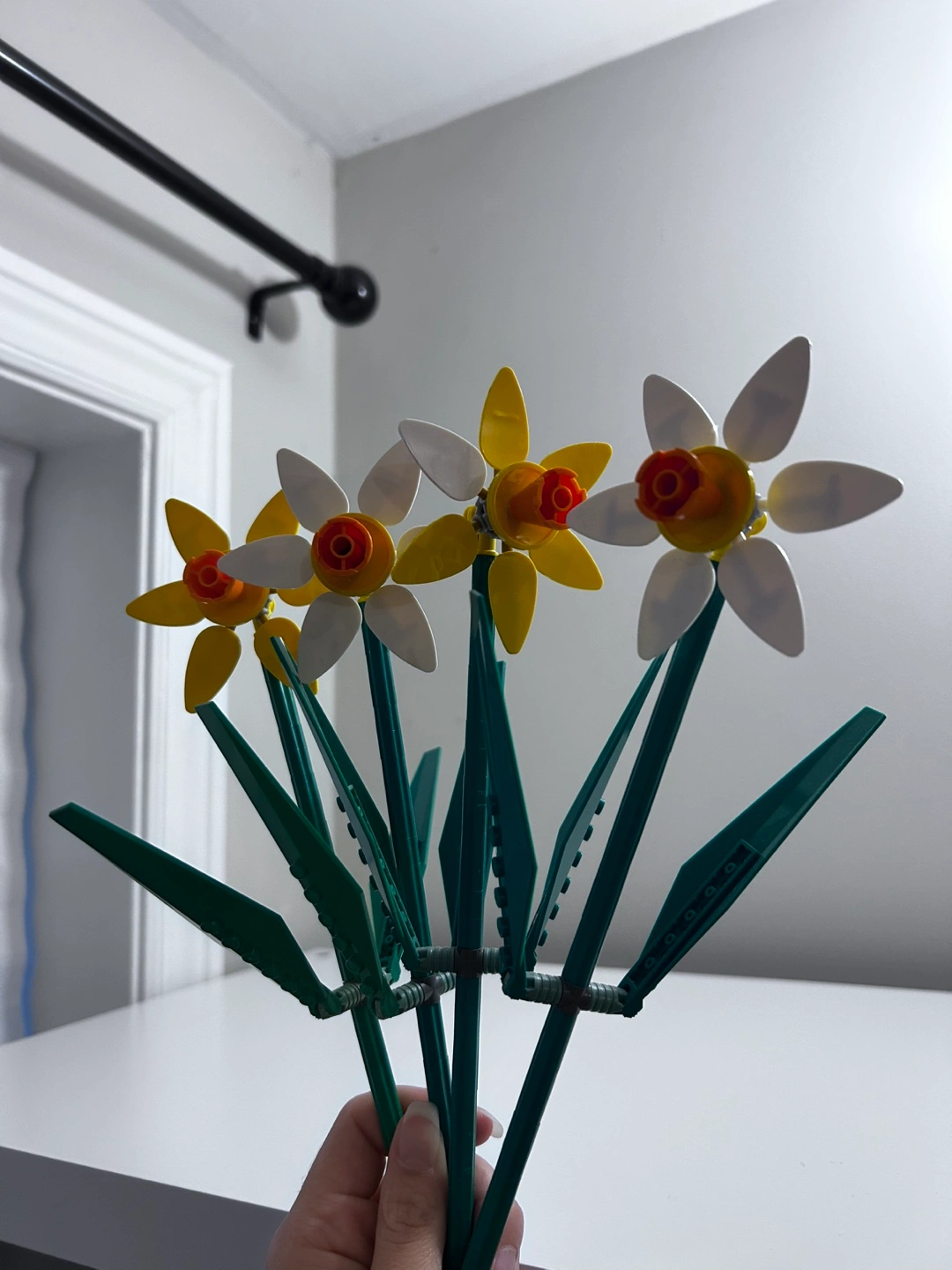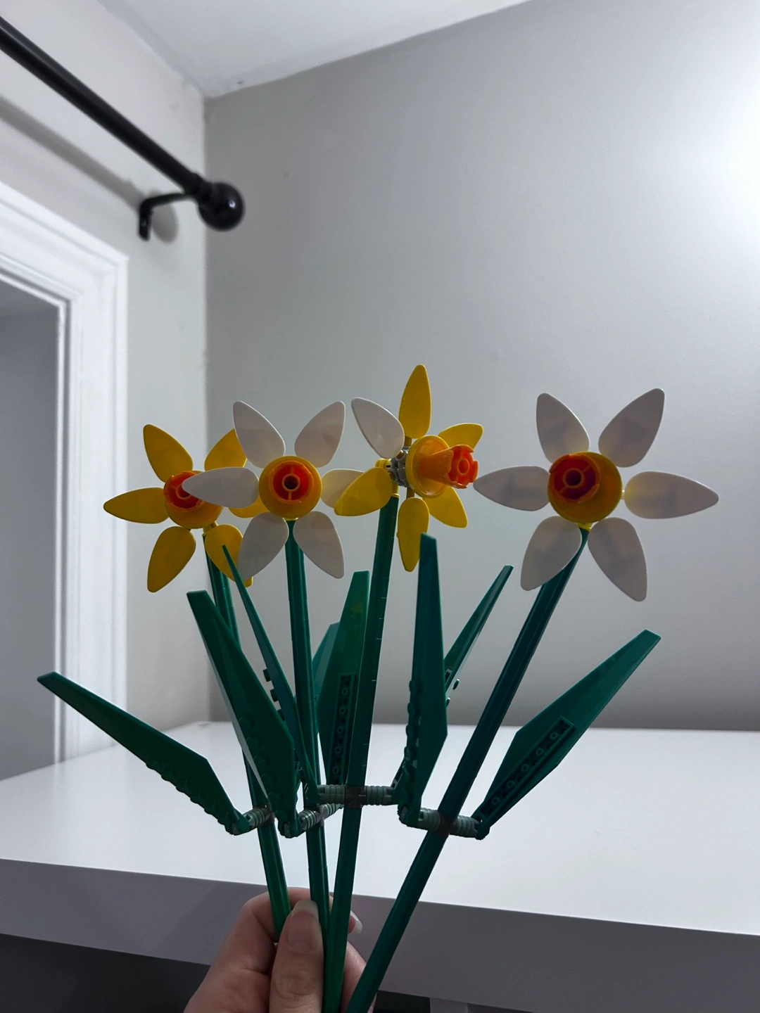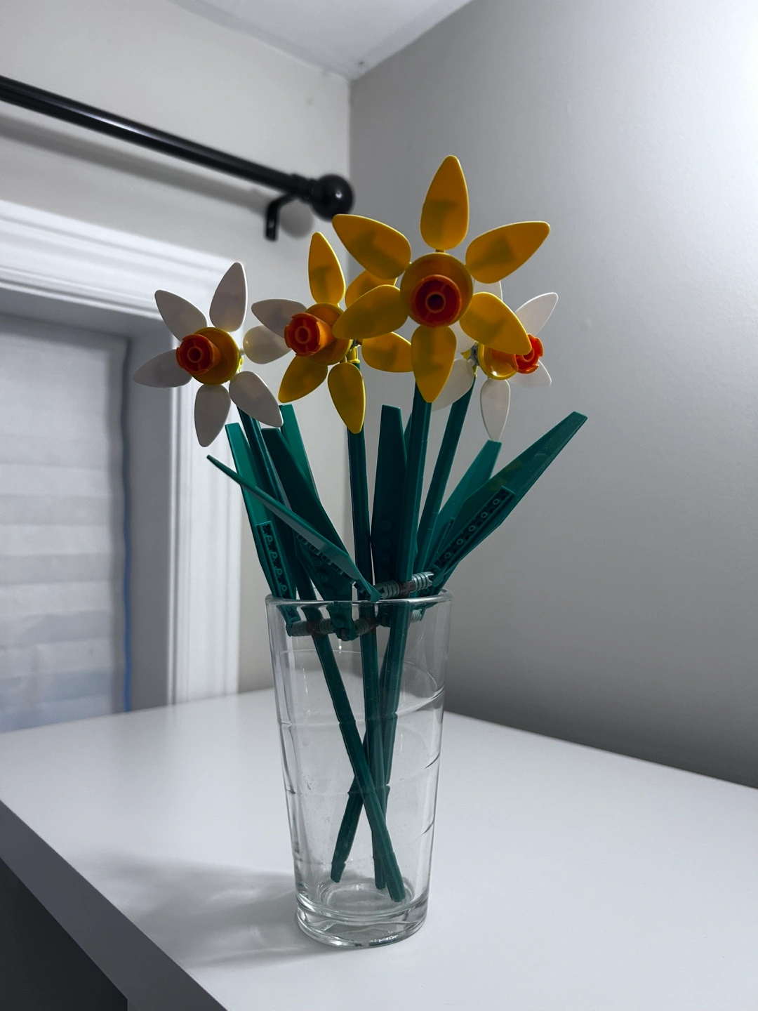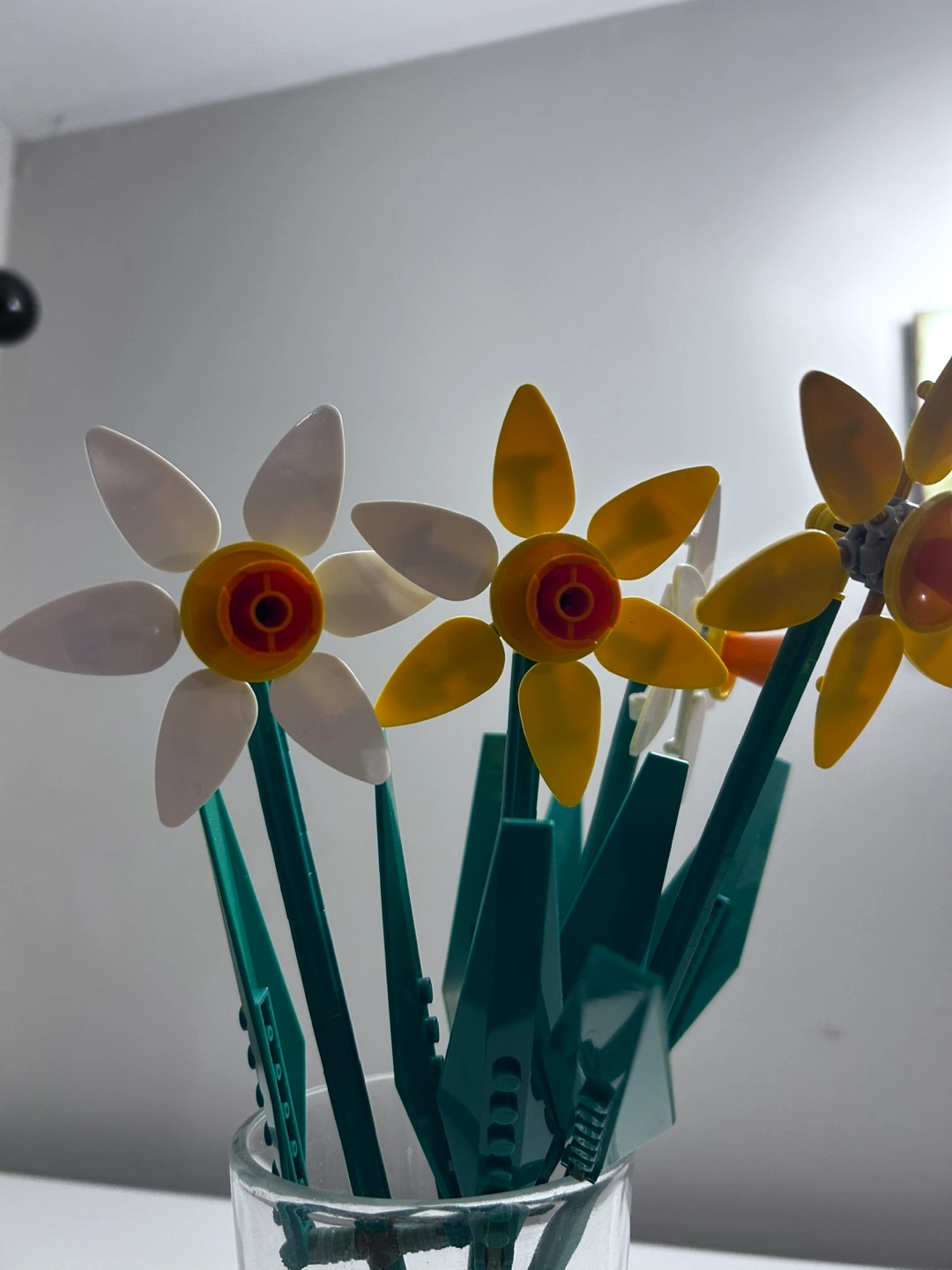 One of the four flowers has a white petal instead of all yellow (it came like that when I bought it) Can be purchased built or unbuilt