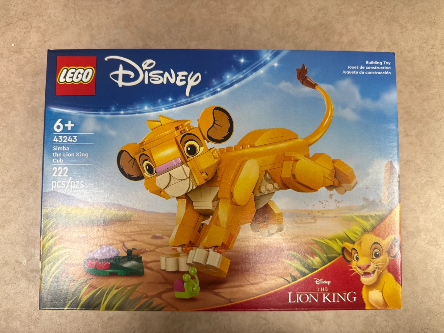 Selling a LEGO Disney set, model 43243, featuring Simba the Lion King Cub! This building toy is suitable for ages 6+. It contains 222 pieces to build your own little Simba