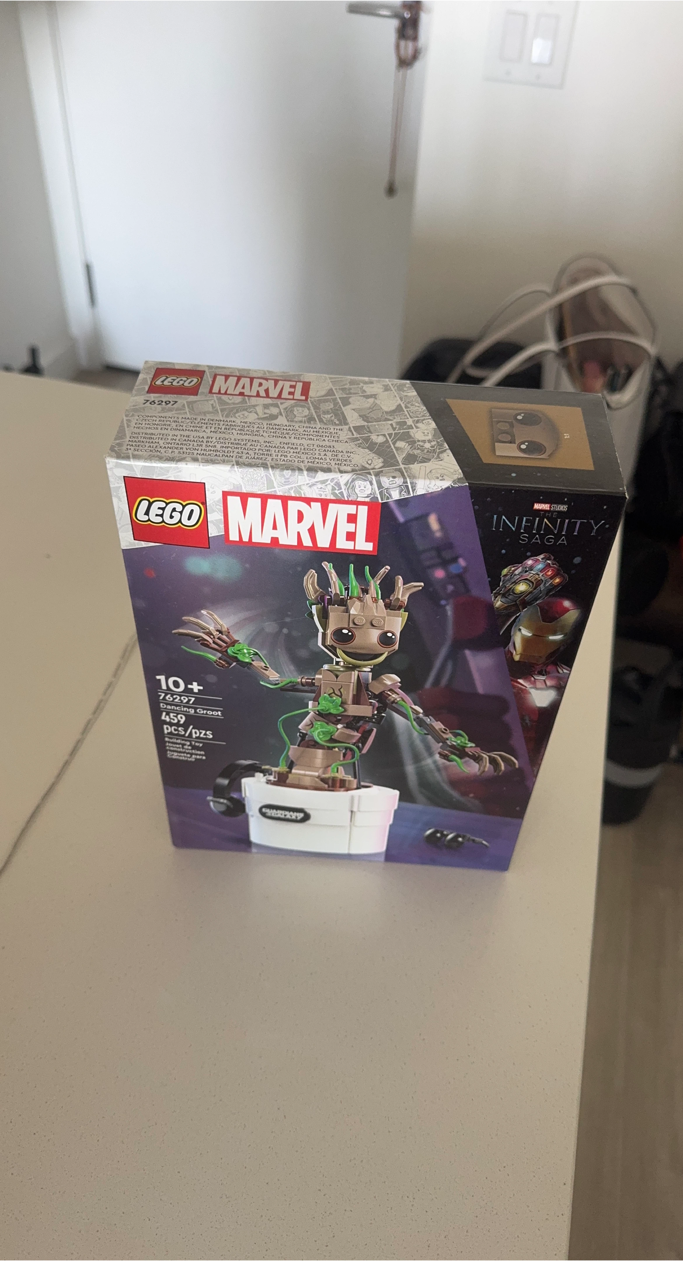Selling a brand new LEGO Marvel Dancing Groot set! This set is number 76297 and contains 459 pieces. It's from the Infinity Saga collection and is recommended for ages 10+