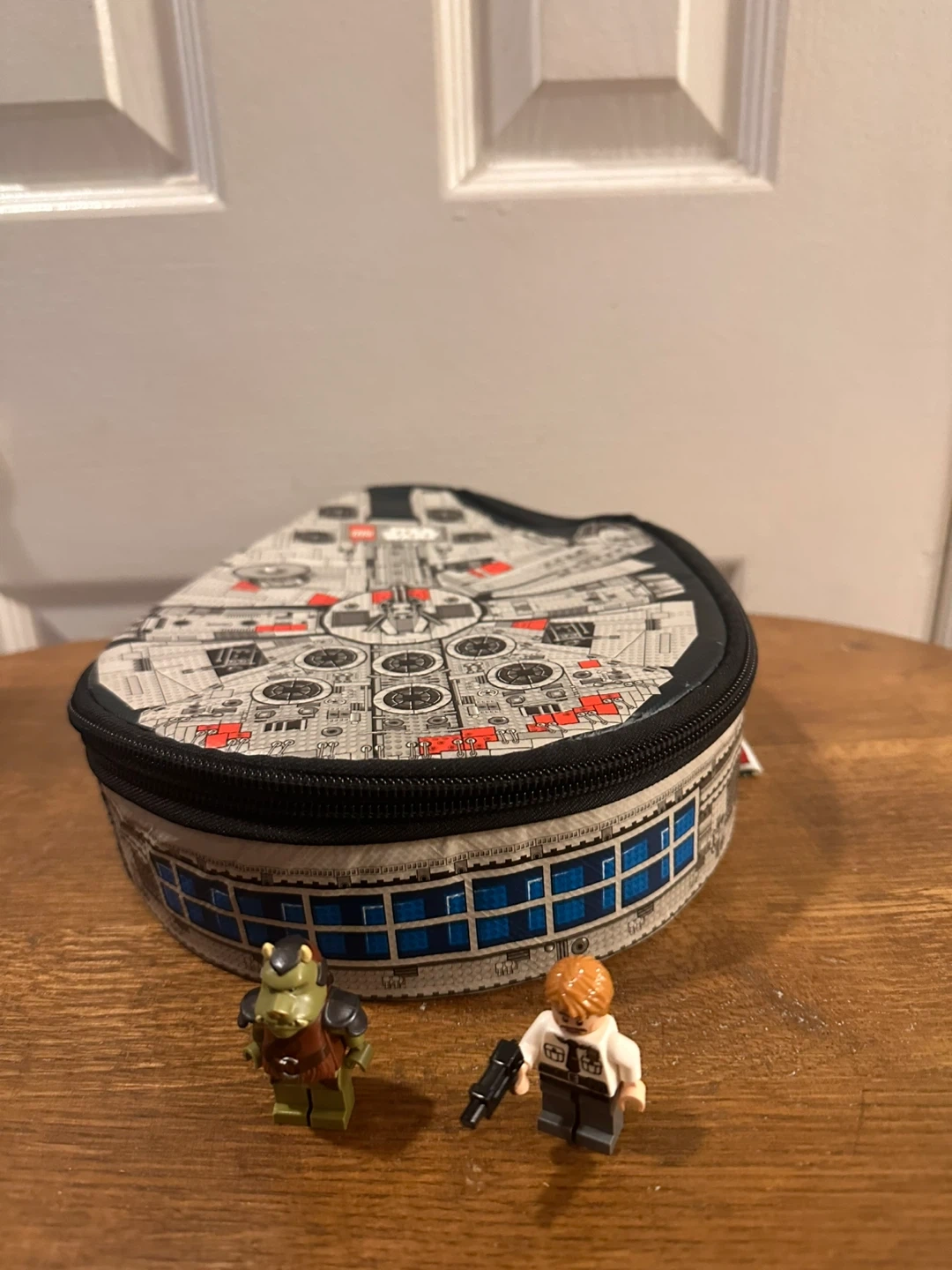 Selling a LEGO Star Wars Millennium Falcon case! It's in great condition and perfect for storing your LEGO sets or other small items. Includes two LEGO mini figures!