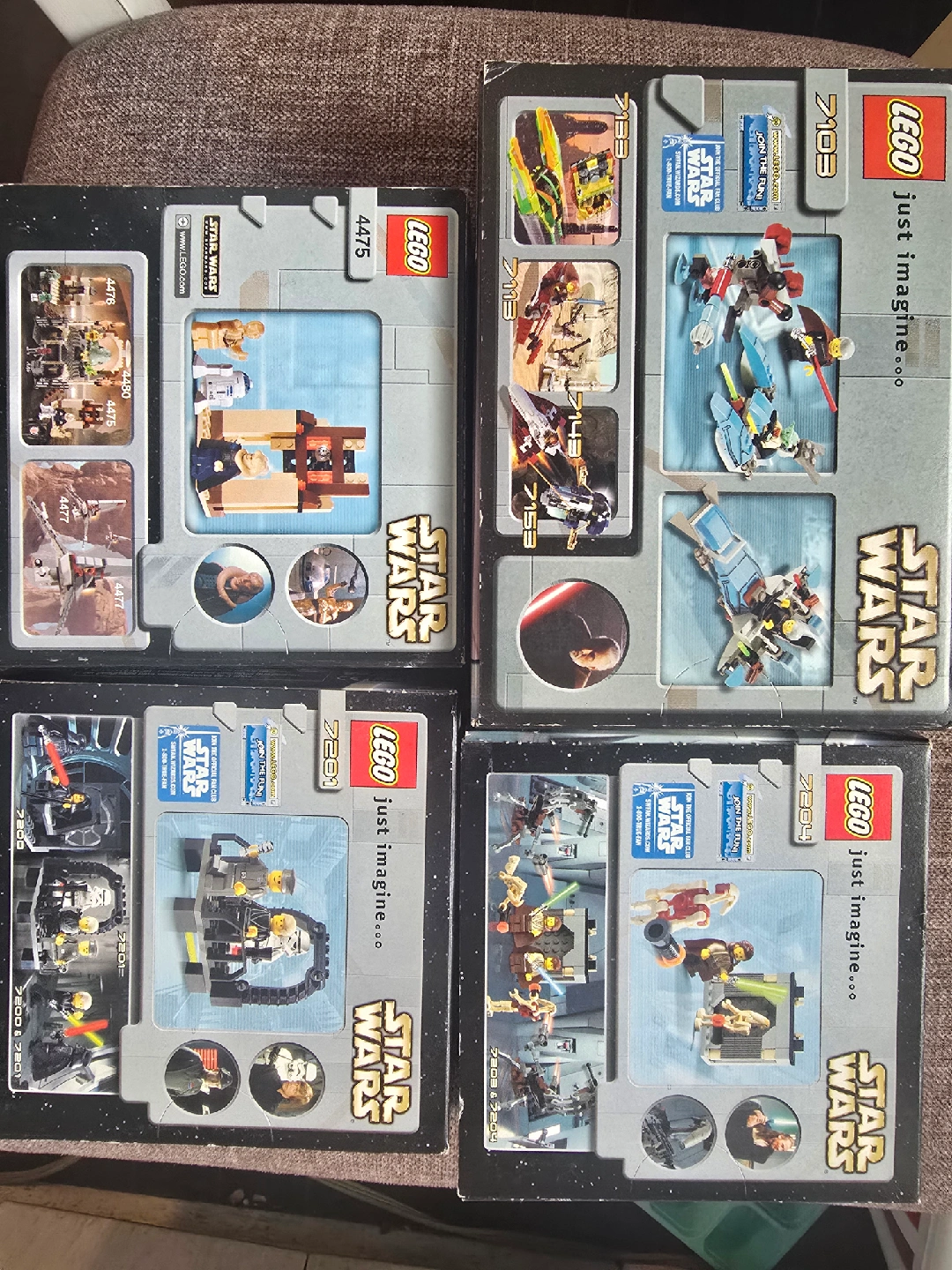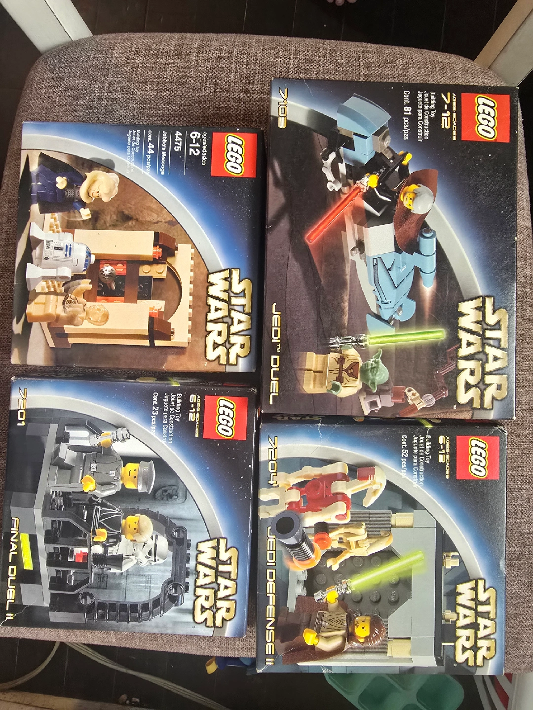 Selling a collection of LEGO Star Wars sets! Included are: - 4475 (Mos Eisley Cantina) - 7103 (Jedi Duel) - 7201 (Final Duel II) - 7204 (Jedi Defense II) All sets are NEW COMPLETE