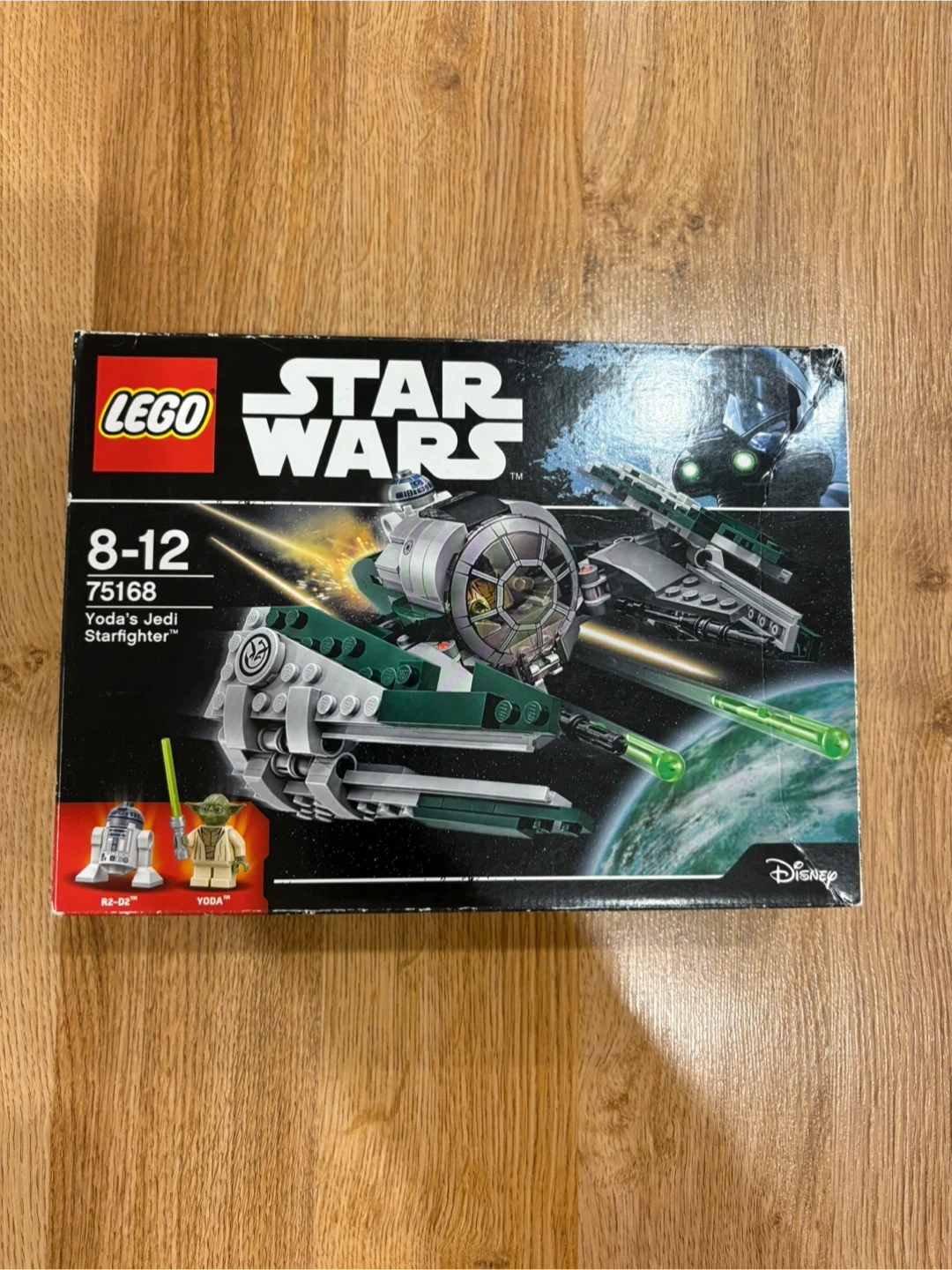 Lego Star Wars Yoda's Jedi Starfighter, set number 75168! Recommended for ages 8-12 with 262 pieces. Includes box, instruction book, and numbered bags with pieces.