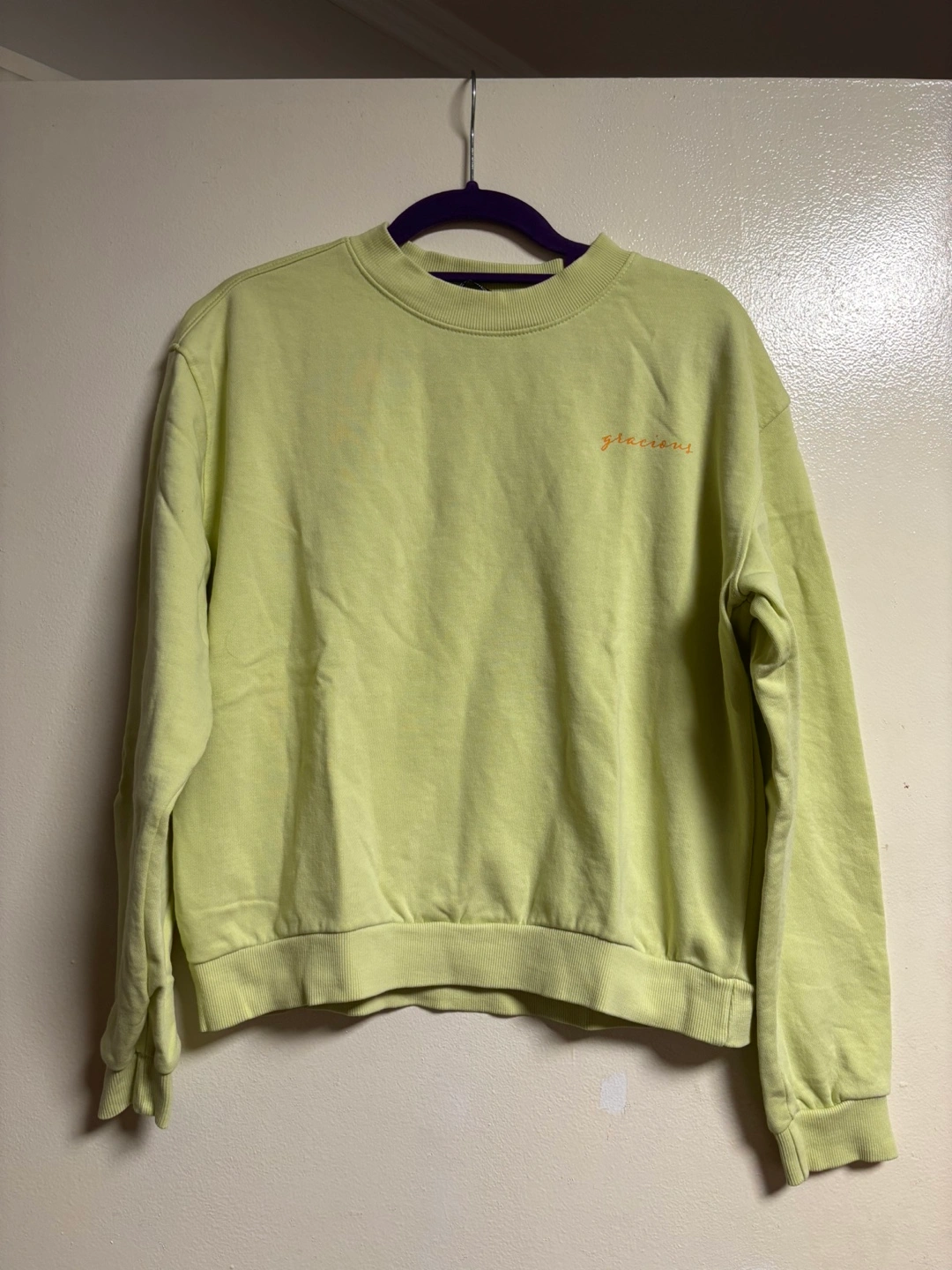 Selling a lemon yellow color sweatshirt. Size M (UK-12). Work a couple of times.