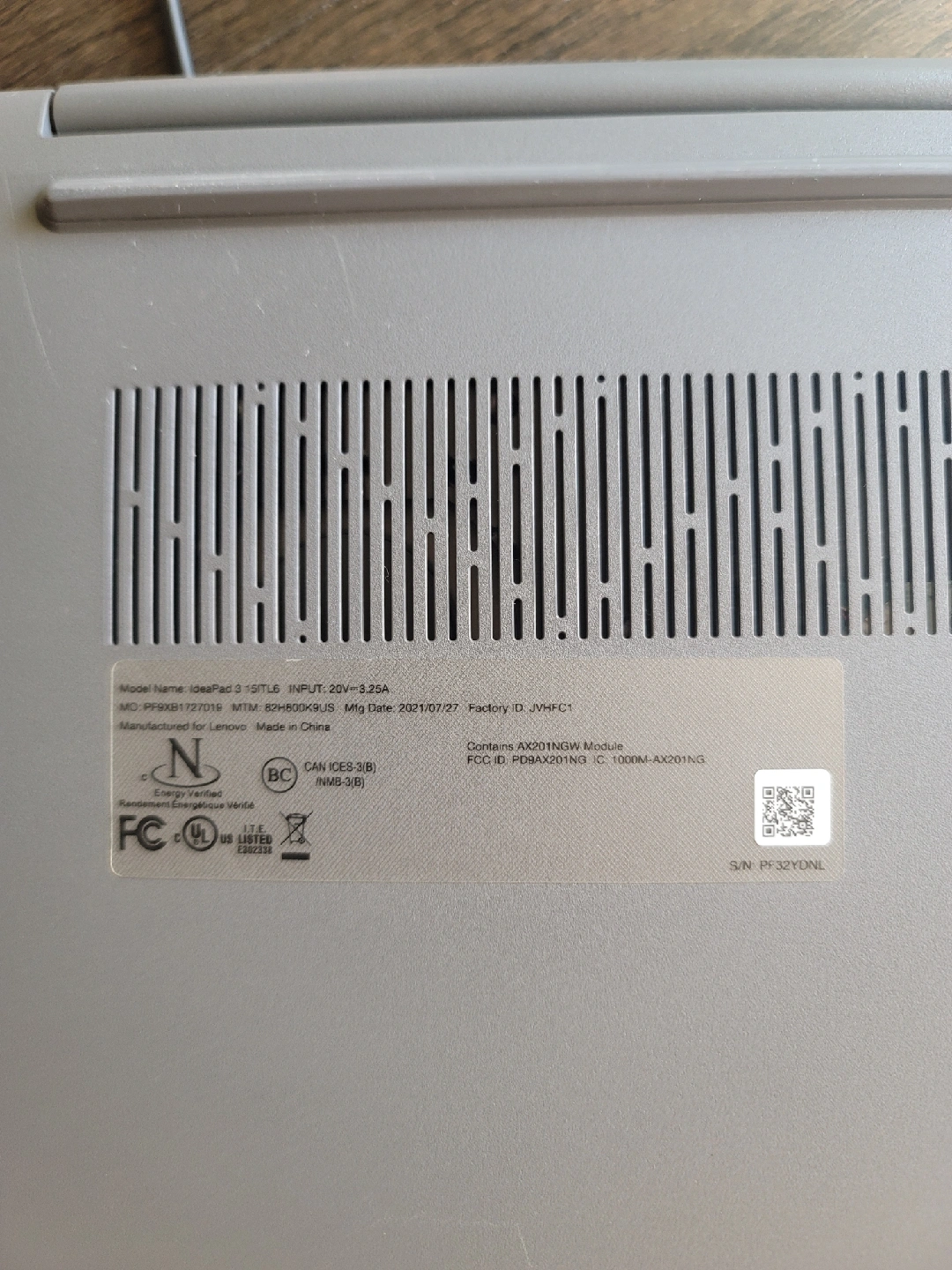 Selling a Lenovo IdeaPad 3 15ITL6 laptop. Model name: IdeaPad 3 15ITL6 Input: 20V - 2.25A Manufactured: 2021 July 27