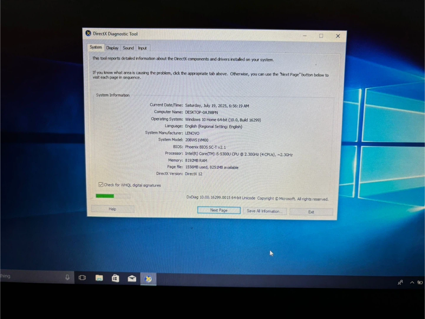Selling a Lenovo ThinkPad T470s laptop. It's in good working condition and ready for a new user. It runs Windows 10 Home 64-bit and has 8192MB of RAM. The processor is an Intel(R) Core(TM) i5-5300U CPU @ 2.30GHz. Feel free to reach out if you have any questions!