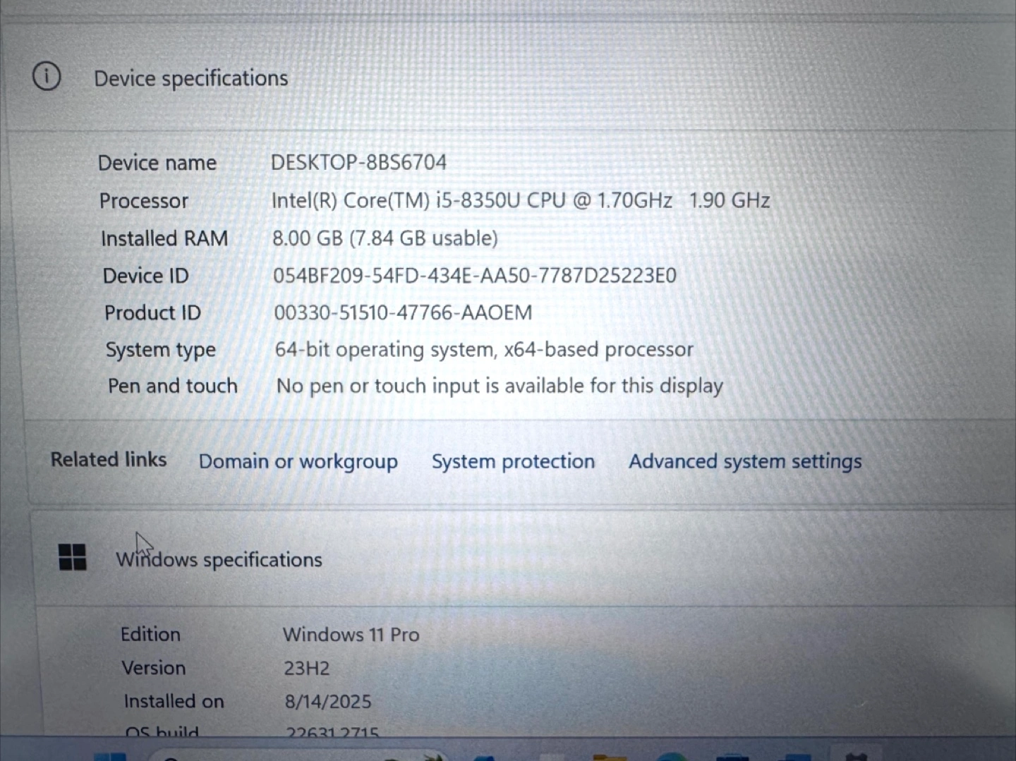 Selling a Lenovo ThinkPad T480s laptop in black. It comes with the charger. Specs: - Processor: Intel(R) Core(TM) i5-8350U CPU @ 1.70GHz 1.90 GHz - Installed RAM: 8.00 GB (7.84 GB usable) - Edition: Windows 11 Pro Installed on 2025 August 14