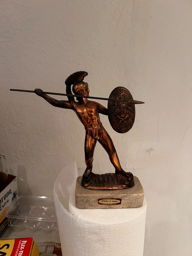 This captivating statue depicts Leonidas of Sparta, a striking piece crafted in Greece. It's in good condition. A great conversation starter or addition to your collection! I like to think this statue holds the secret to ultimate Spartan strength, but honestly, I just don't have room for it anymore. If the ad is up, it's available! Cash only