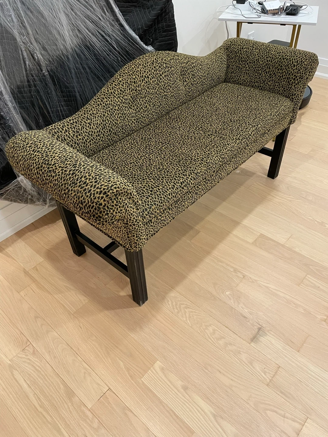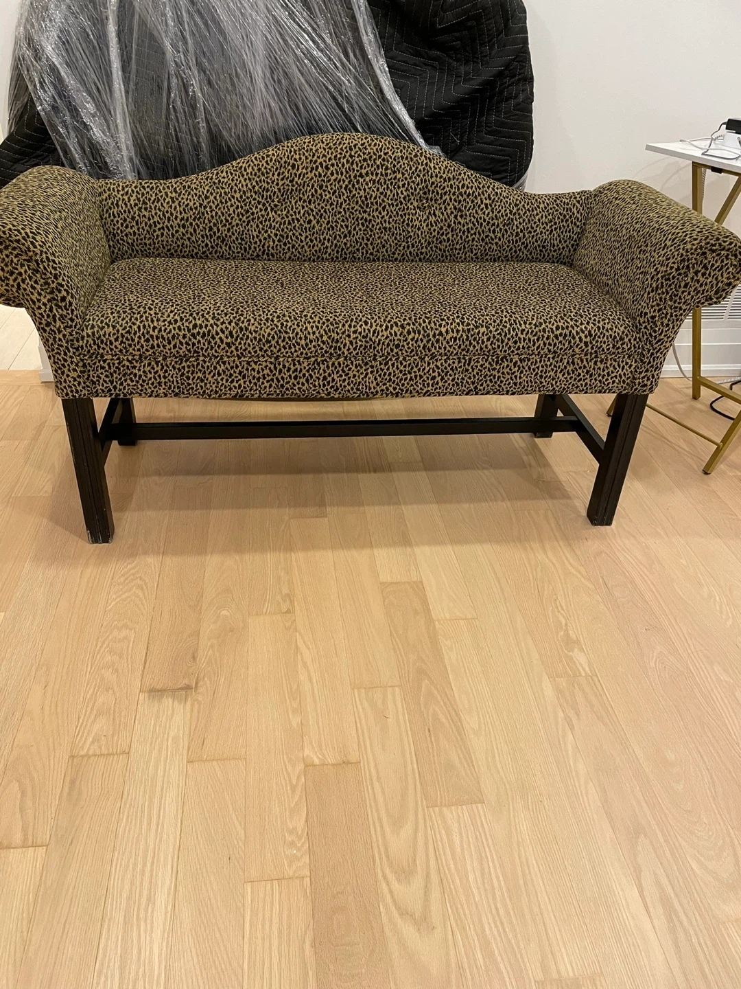 A stylish leopard print bench that would look great in any room. It's in good condition and ready for a new home!