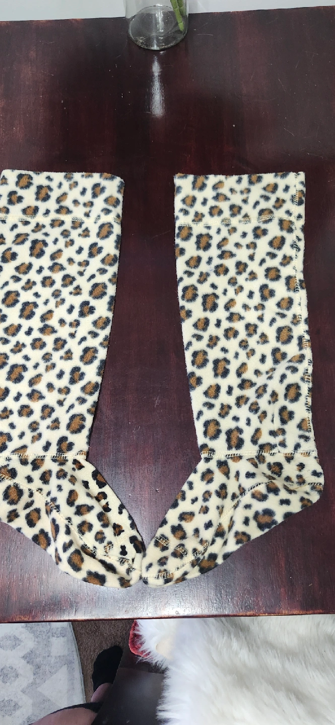 Cozy up with these fun leopard print footed boot socks! They're super soft and perfect for lounging around the house on chilly evenings, or for going out on a cold day . The boot socks are in great condition and ready for a new home!
