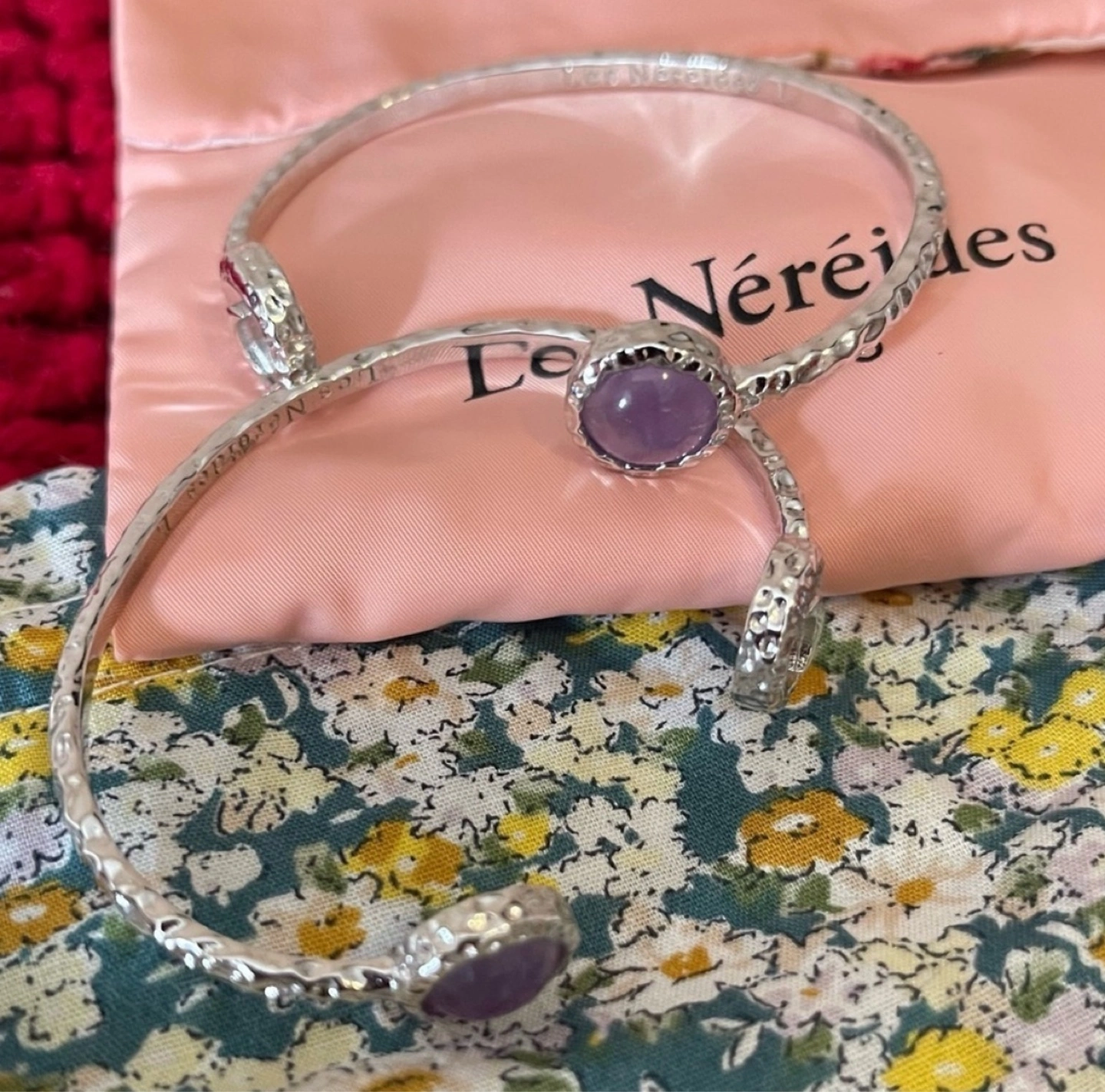 🇫🇷Les Nereides Adjustable Bangle- Silver and Amethyst- NWOT
