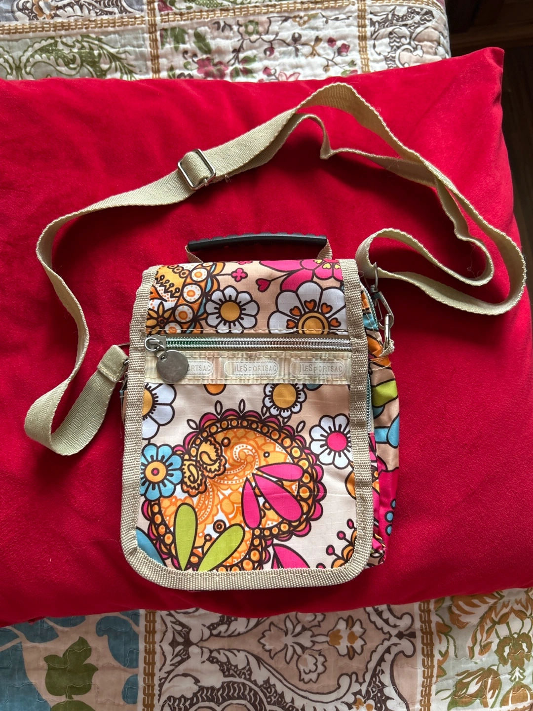 Selling a cute Lesportsac crossbody bag with a colourful floral pattern! It’s perfect for carrying your essentials while adding a touch of fun to any outfit. The bag features multiple zippered compartments to keep everything organized. It's in great condition and ready for a new home