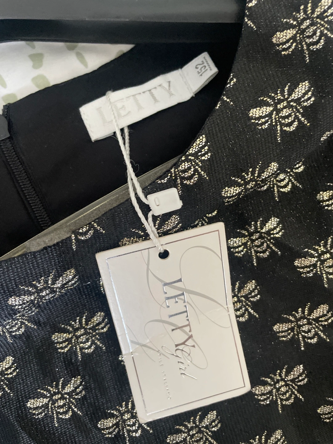 Selling a cute Letty Girl dress in size 152! It's black with a silver bee pattern. Perfect for a special occasion or just feeling fancy