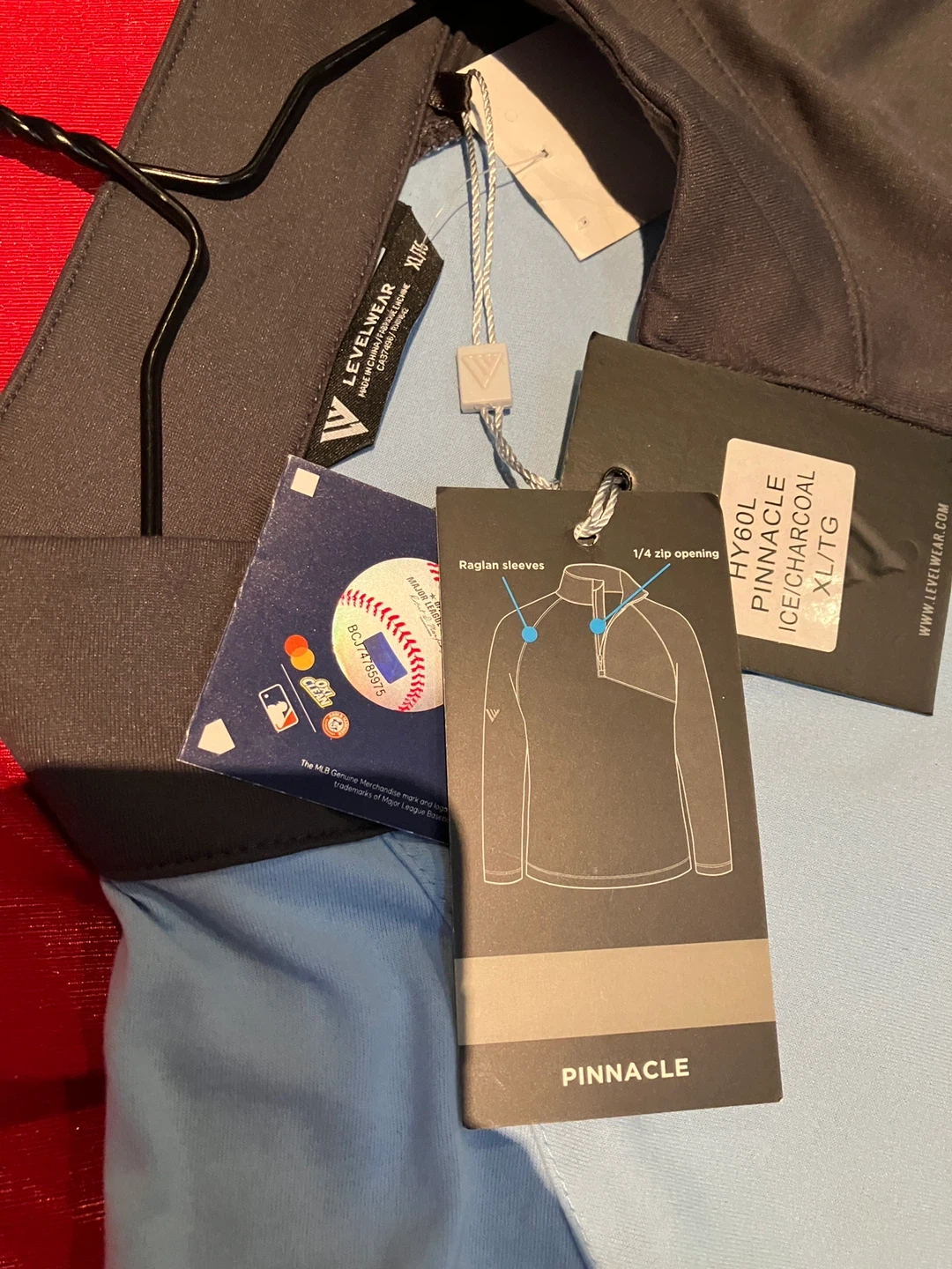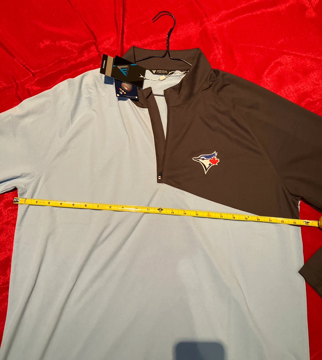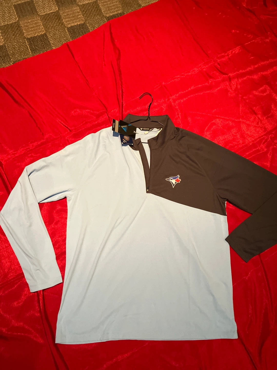 I'm selling a brand new Levelwear Toronto Blue Jays Longsleeves It's in excellent condition and still has the tags attached. The size is XL and the colour is ice/charcoal. It has raglan sleeves and a 1/4 zip opening.