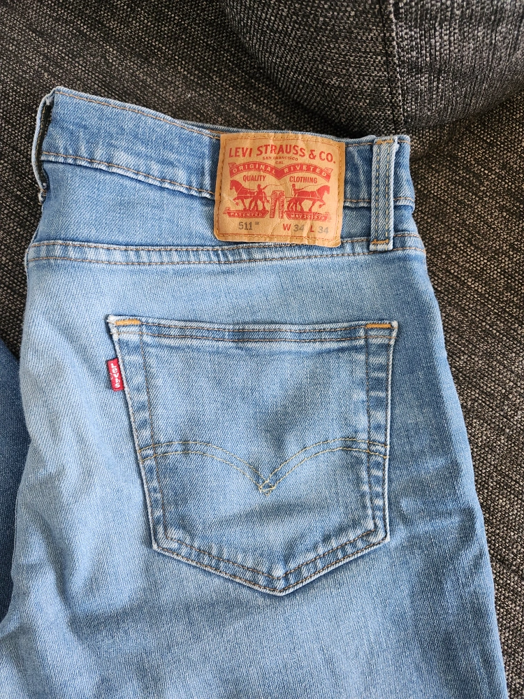 Selling a pair of Levi's 511 slim fit jeans. They're a light wash and in great condition. The size is W34 L34.