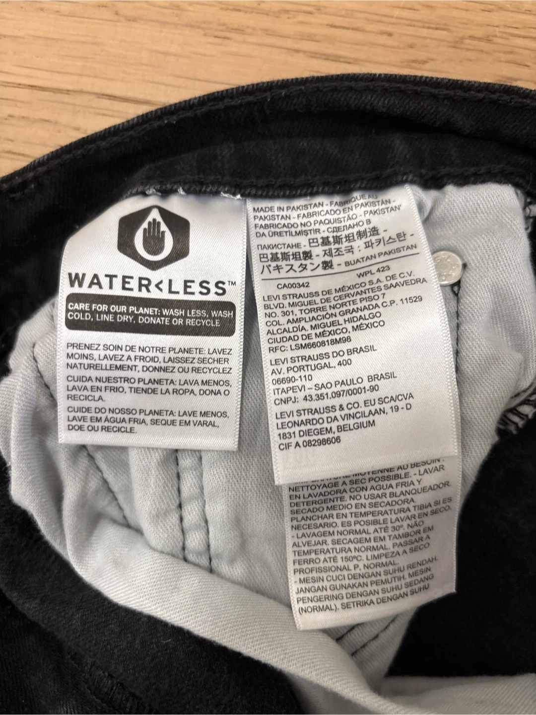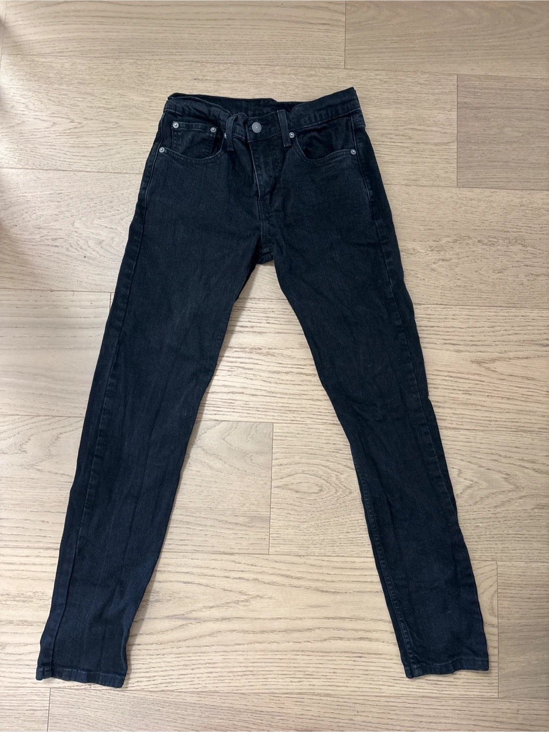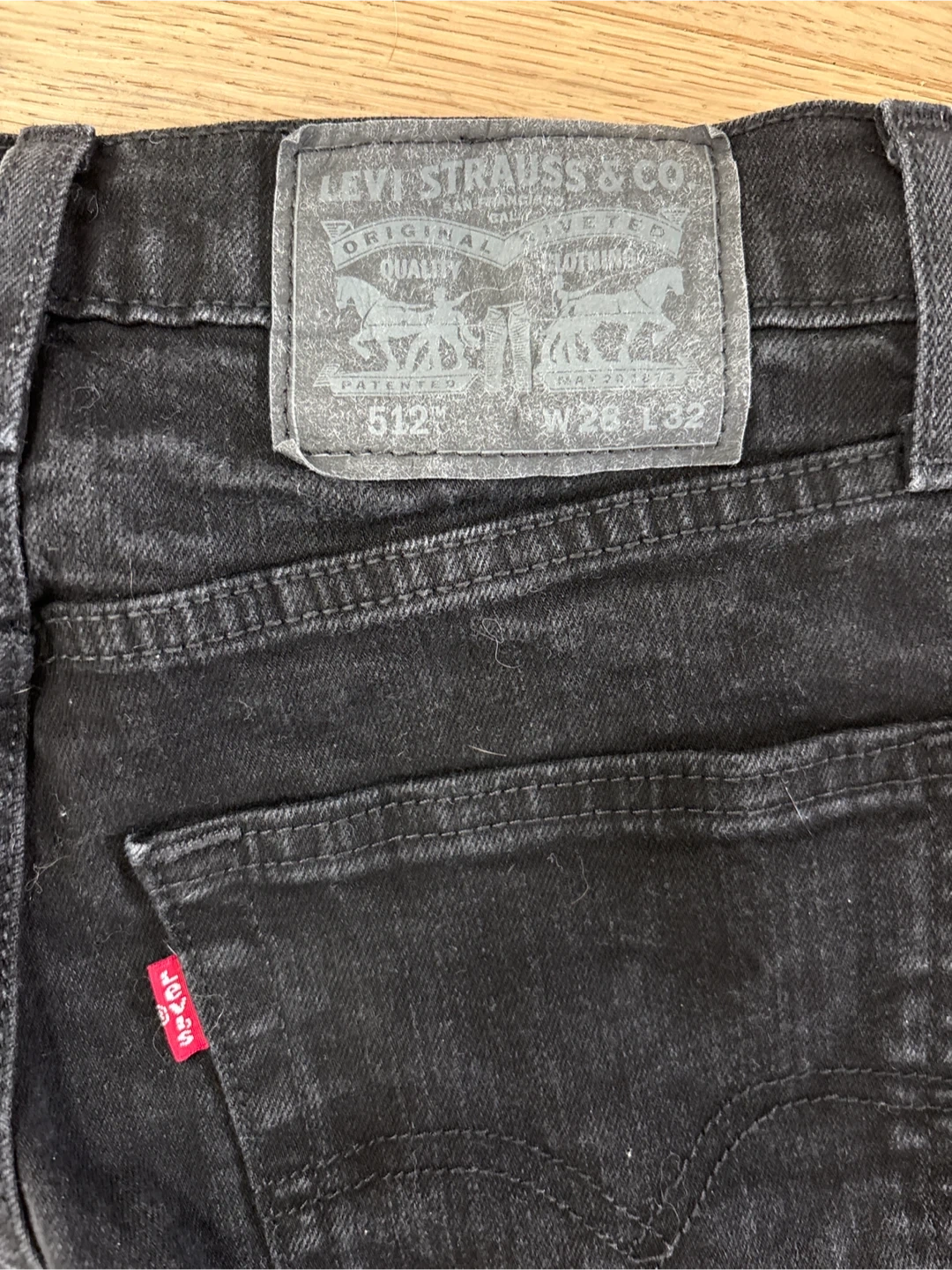 Selling a pair of Levi's 512 slim taper jeans in black. They're size W28 L32. These jeans are part of the WaterLess collection, which means they were made with less water and care for our planet! They're in great condition and ready for a new home