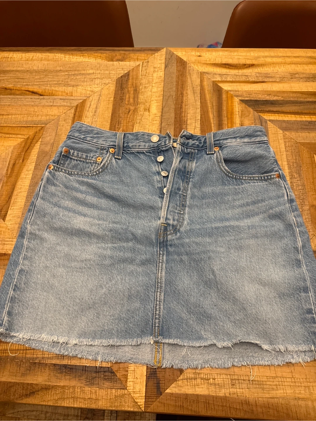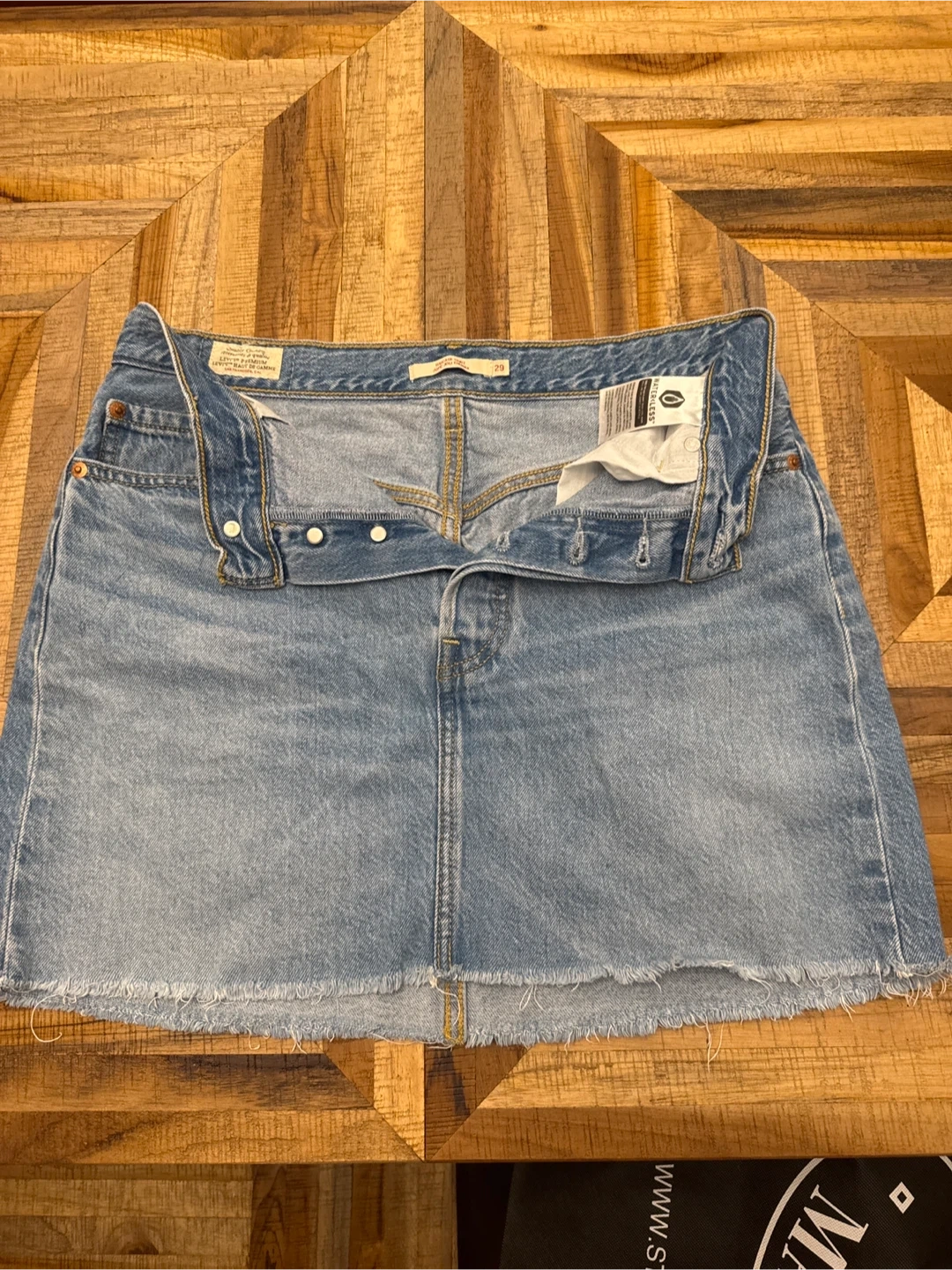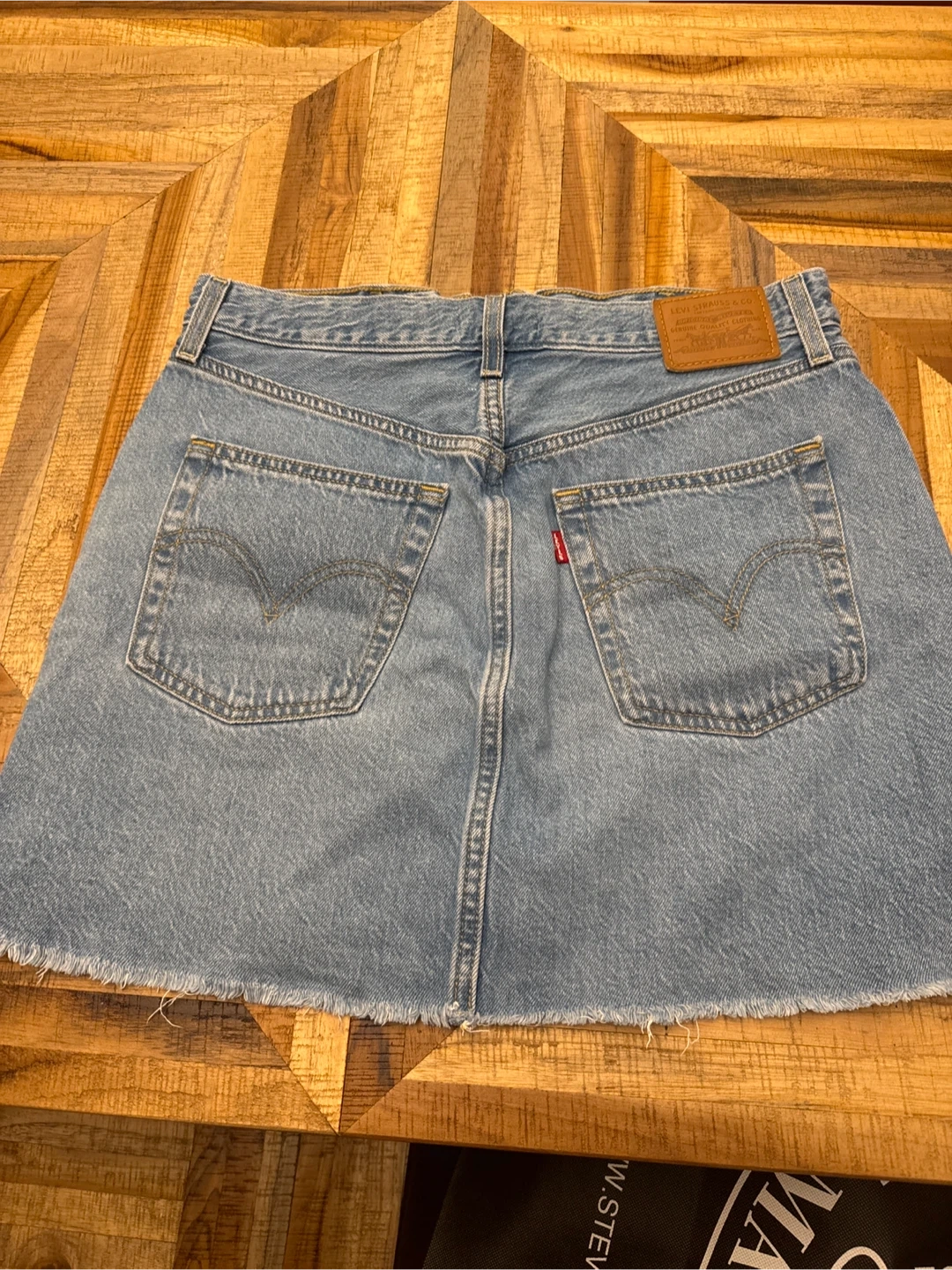 Selling a Levi's denim mini skirt in size 29. It's in great condition and ready for a new home! The classic denim look makes it a versatile addition to any wardrobe. Perfect for casual outings or dressing up with your favourite top