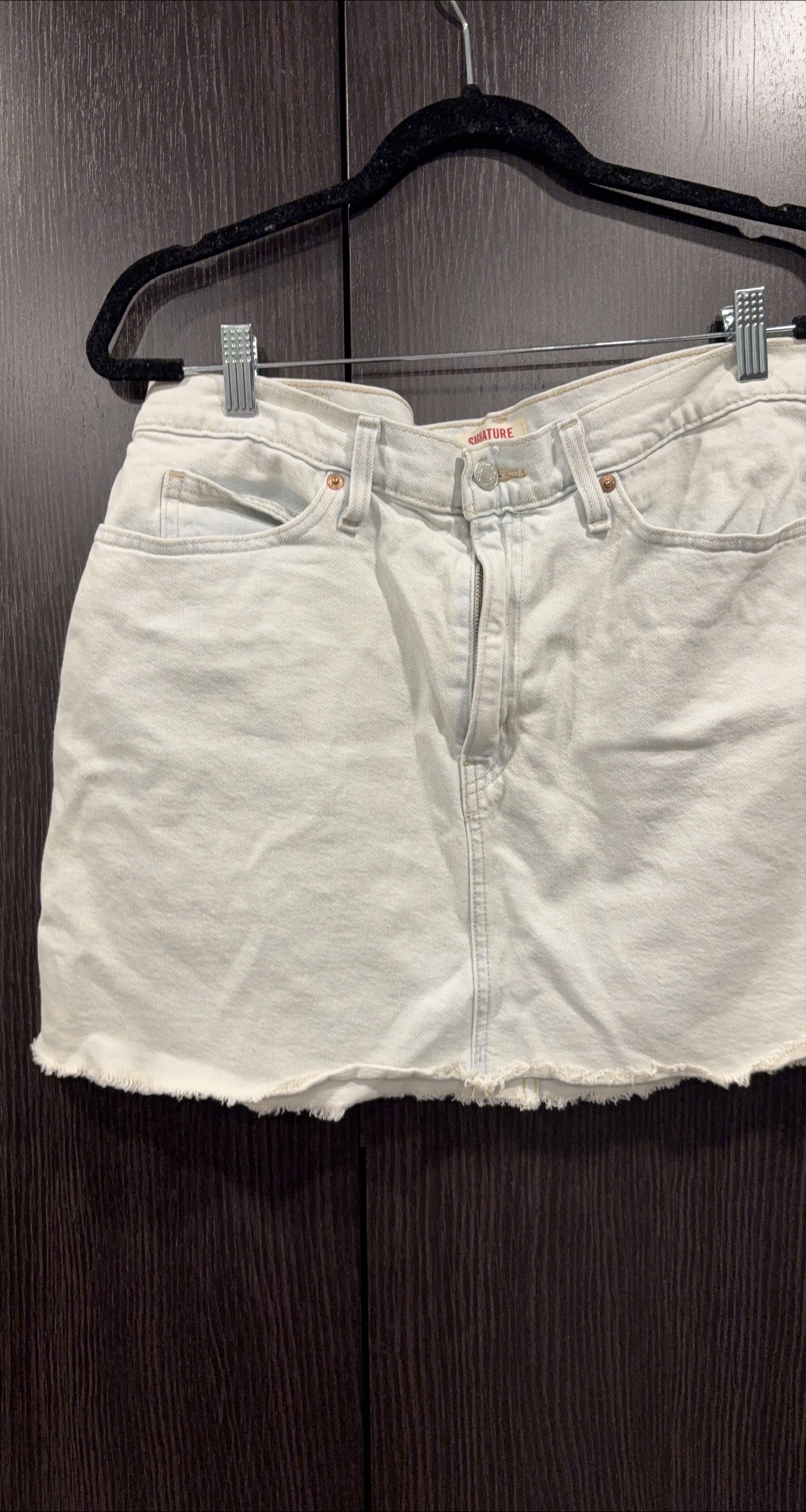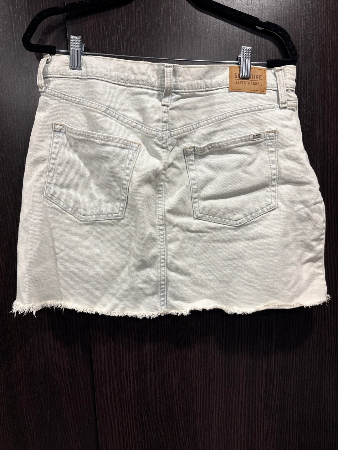 Selling a Levi's Signature denim skirt in size 12! It's a light wash denim with a frayed hem. In great condition and ready for a new home