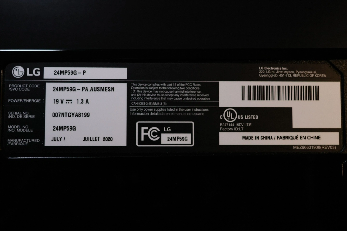 Selling an LG 24MP59G-P monitor. It's a 24-inch gaming display with various ports including HDMI, DisplayPort, and D-Sub. Took stand apart for pics.