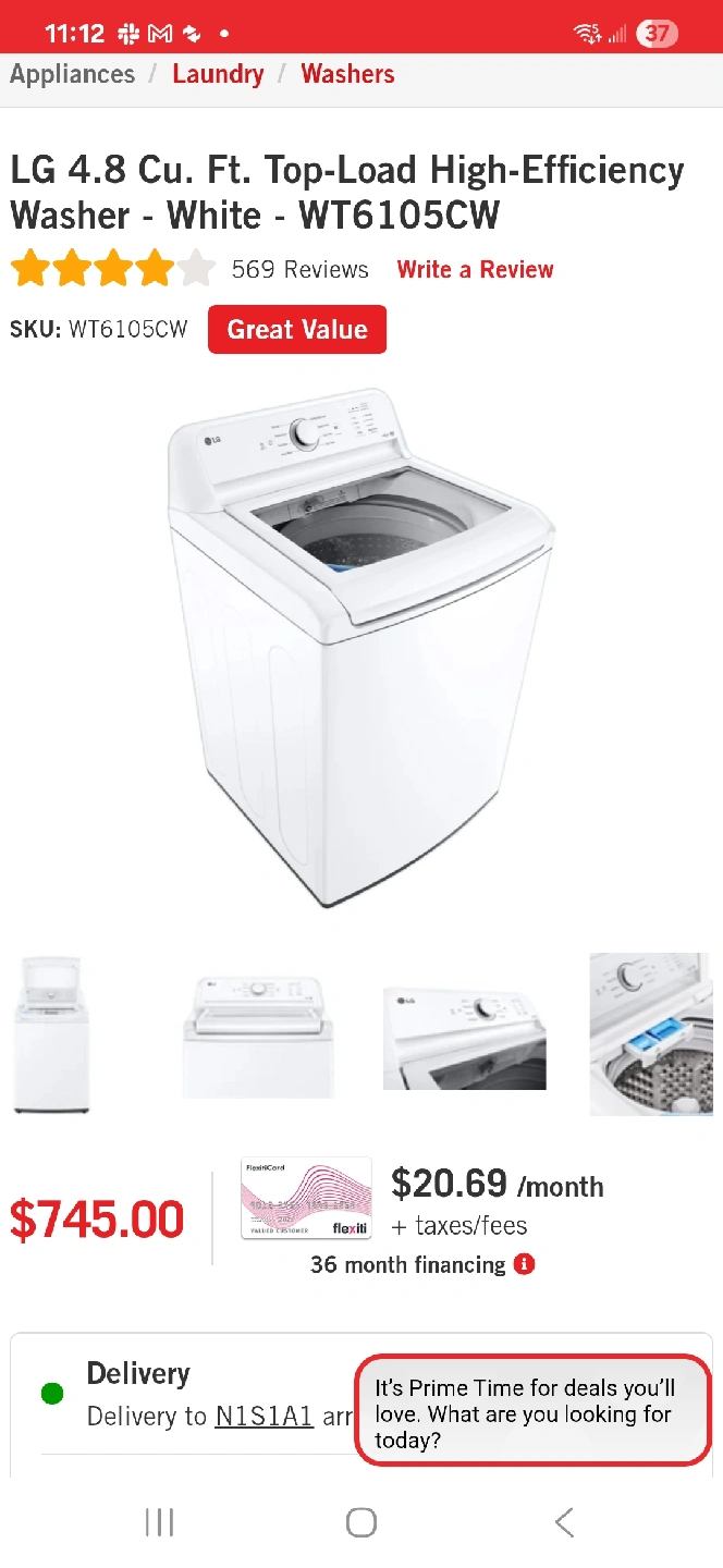Selling an LG 4.8 Cu. Ft. Top-Load High-Efficiency Washer in white! It's a great value and ready to go to a new home it is brand new in the box, The reason why I have it is I had an in-store credit for a washer. but needed to go purchase a new one sooner than available.