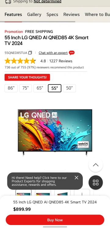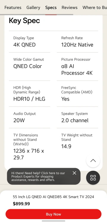LG 55" QNED85 4K Smart TV 2024