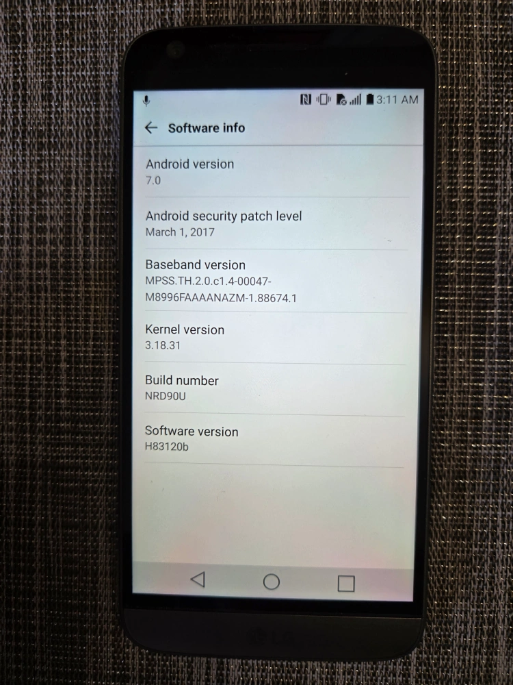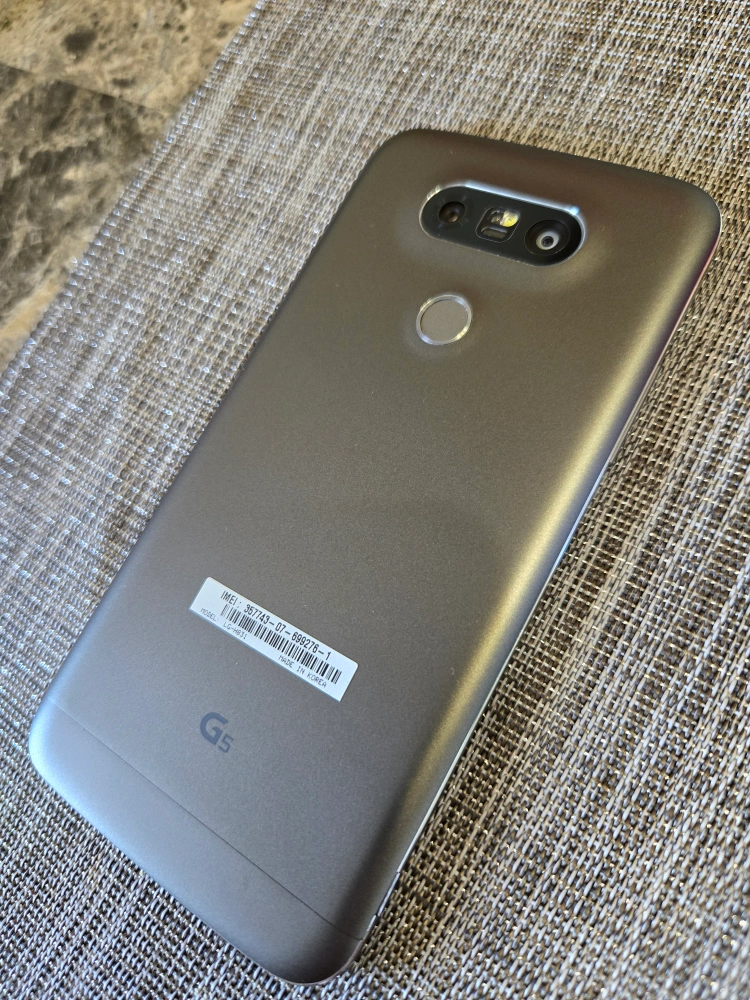 Selling an LG G5 smartphone. It has 32GB of internal storage. The phone runs on Android version 7.0.