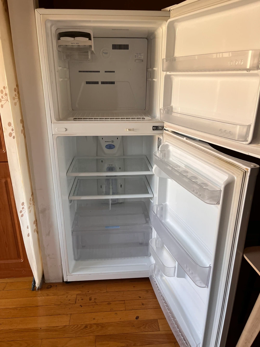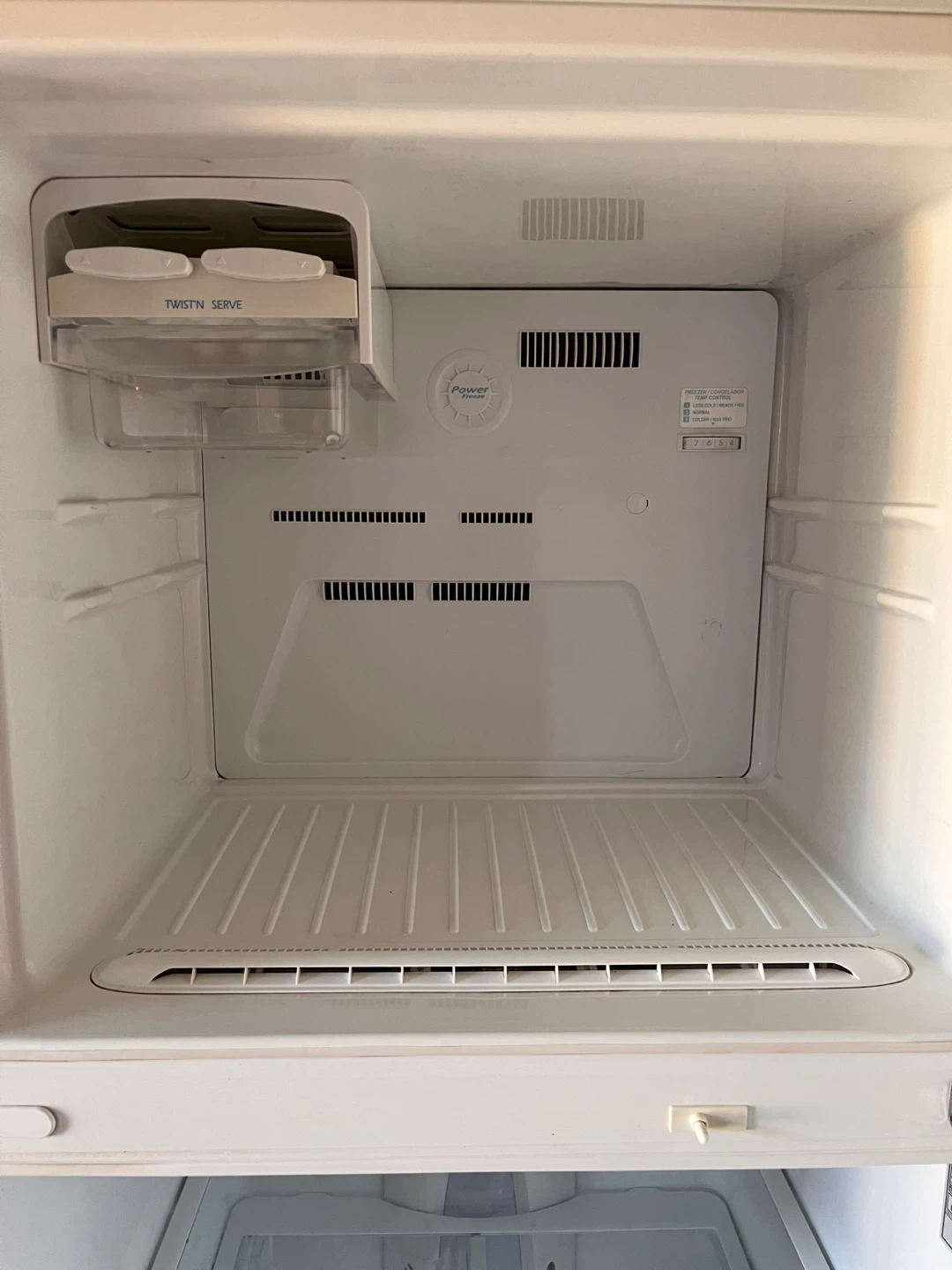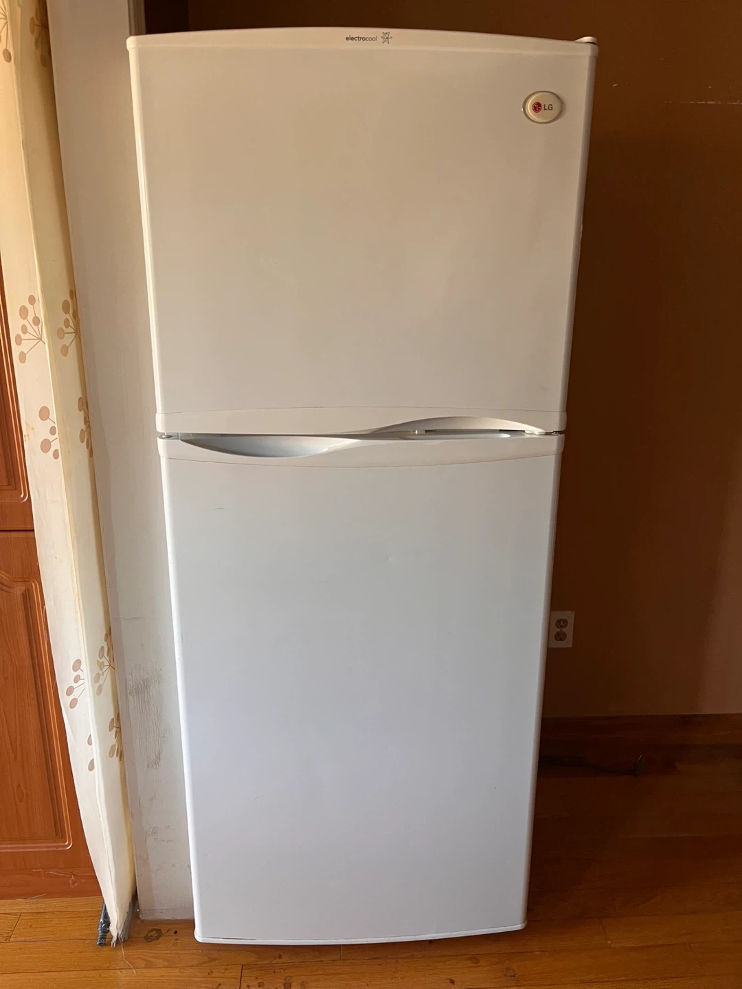 Selling a white LG refrigerator. It's in good working condition and ready for a new home! Features include a 'Magic Crisper' drawer and a 'Twist N Serve' ice dispenser