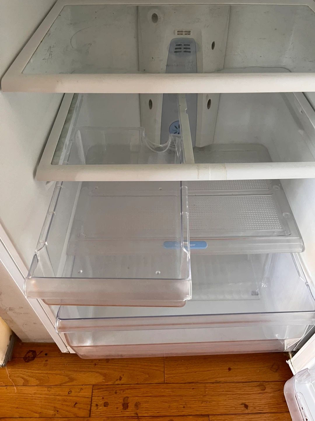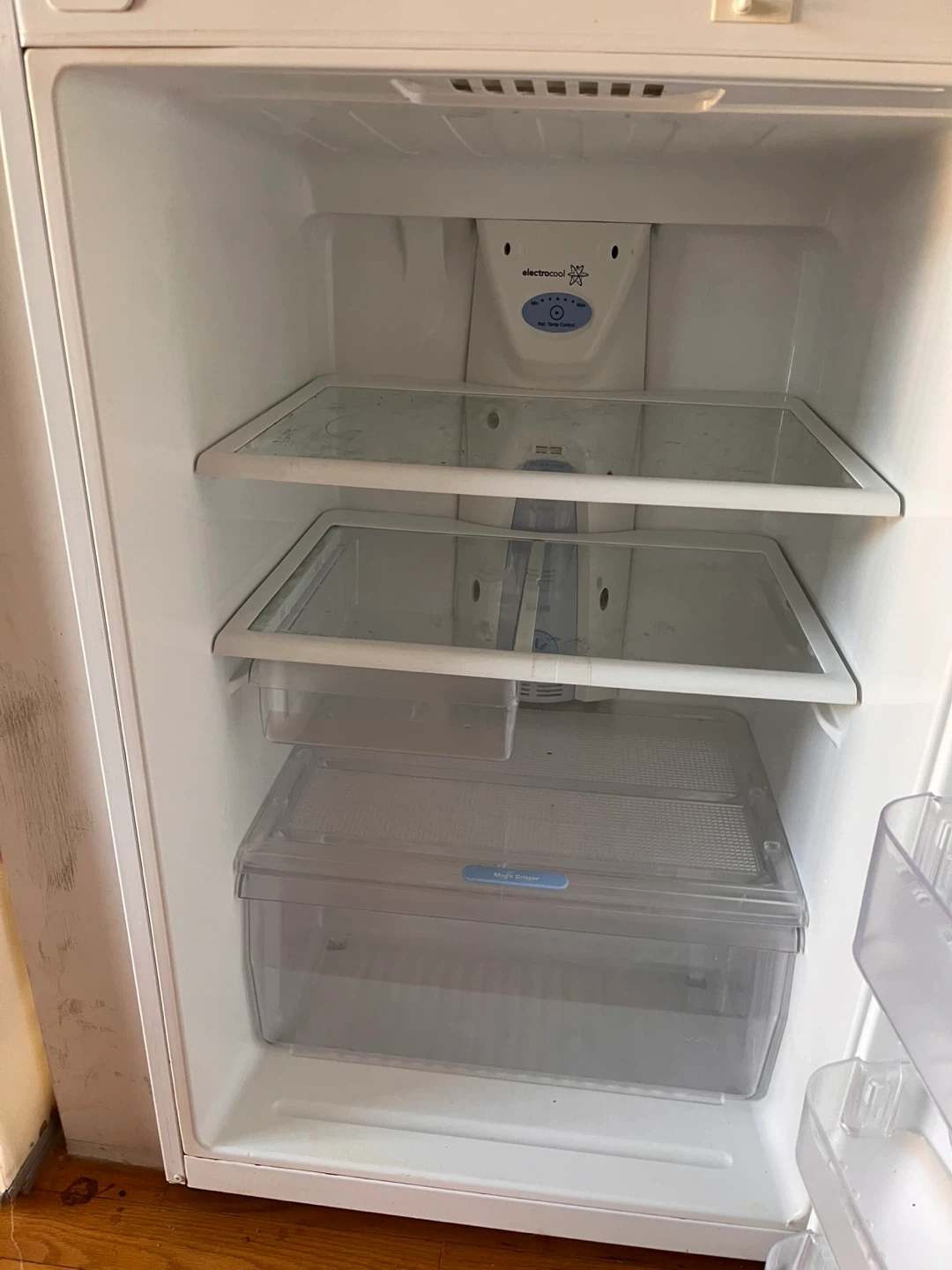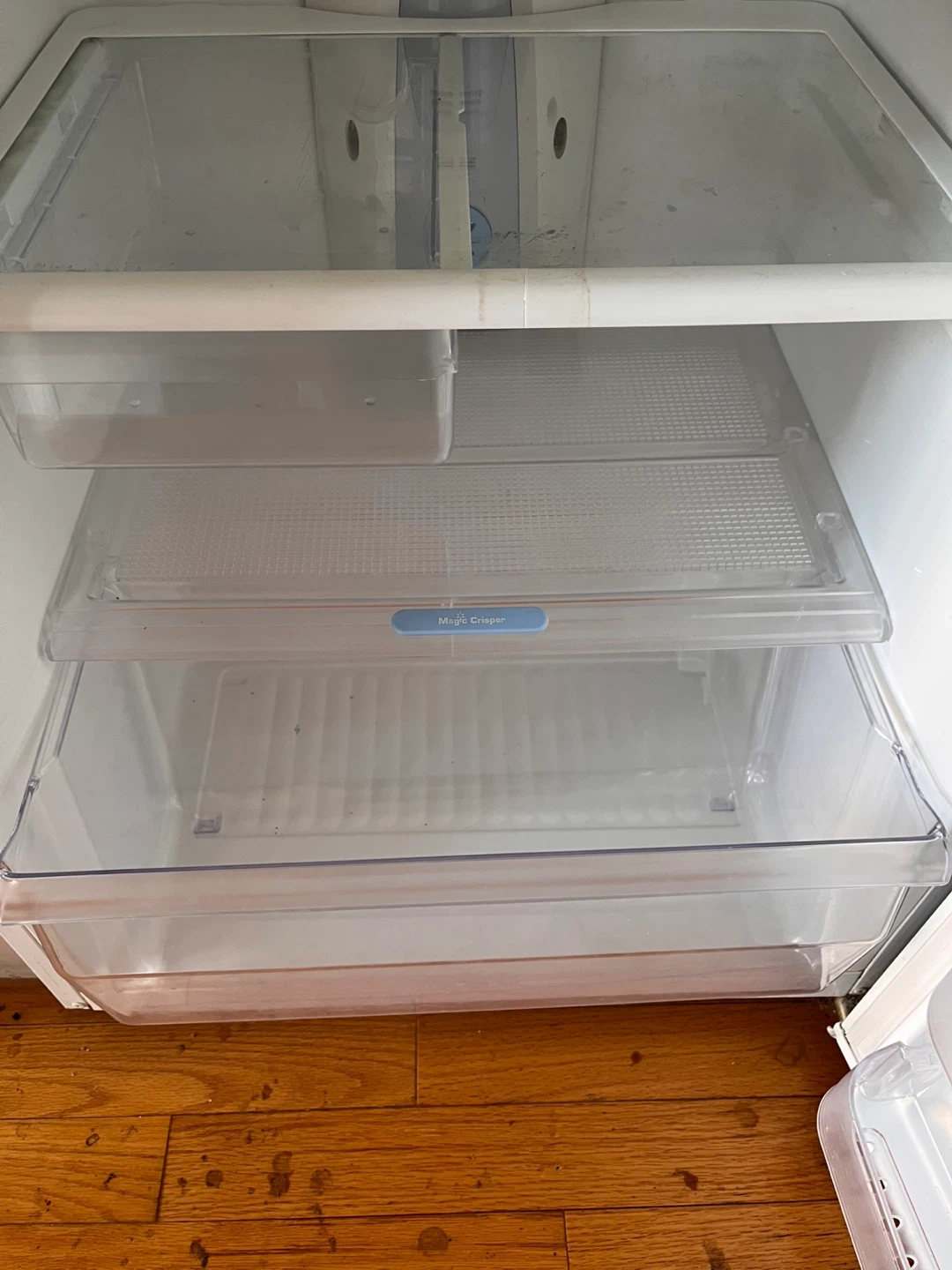 Selling a white LG refrigerator. It's in good working condition and ready for a new home! Features include a 'Magic Crisper' drawer and a 'Twist N Serve' ice dispenser