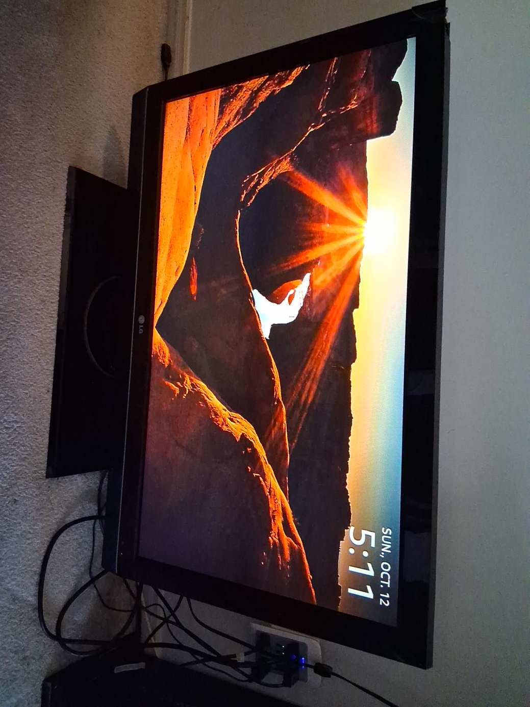 Selling an LG TV. Please note that it's damaged in the left hand corner.