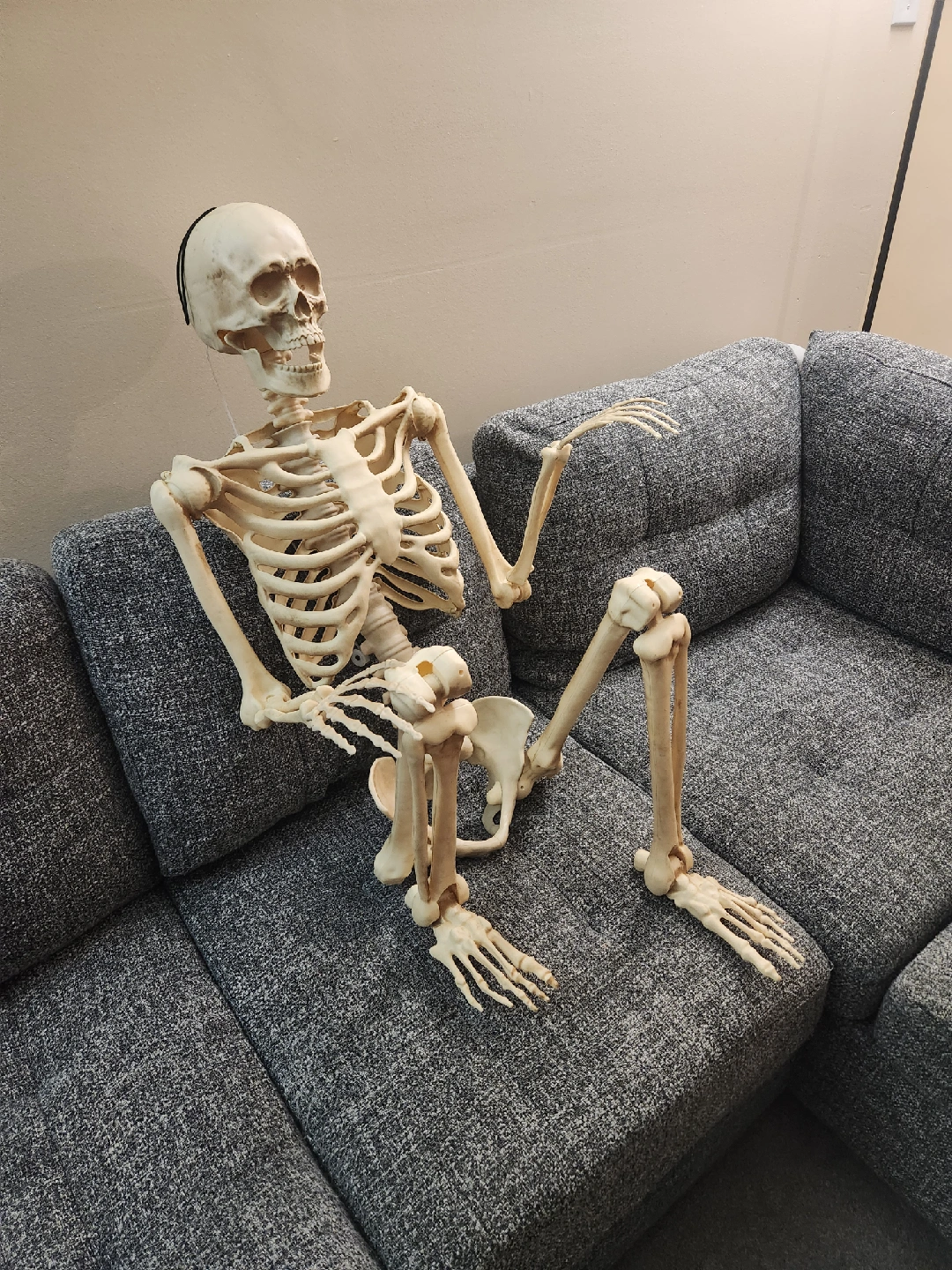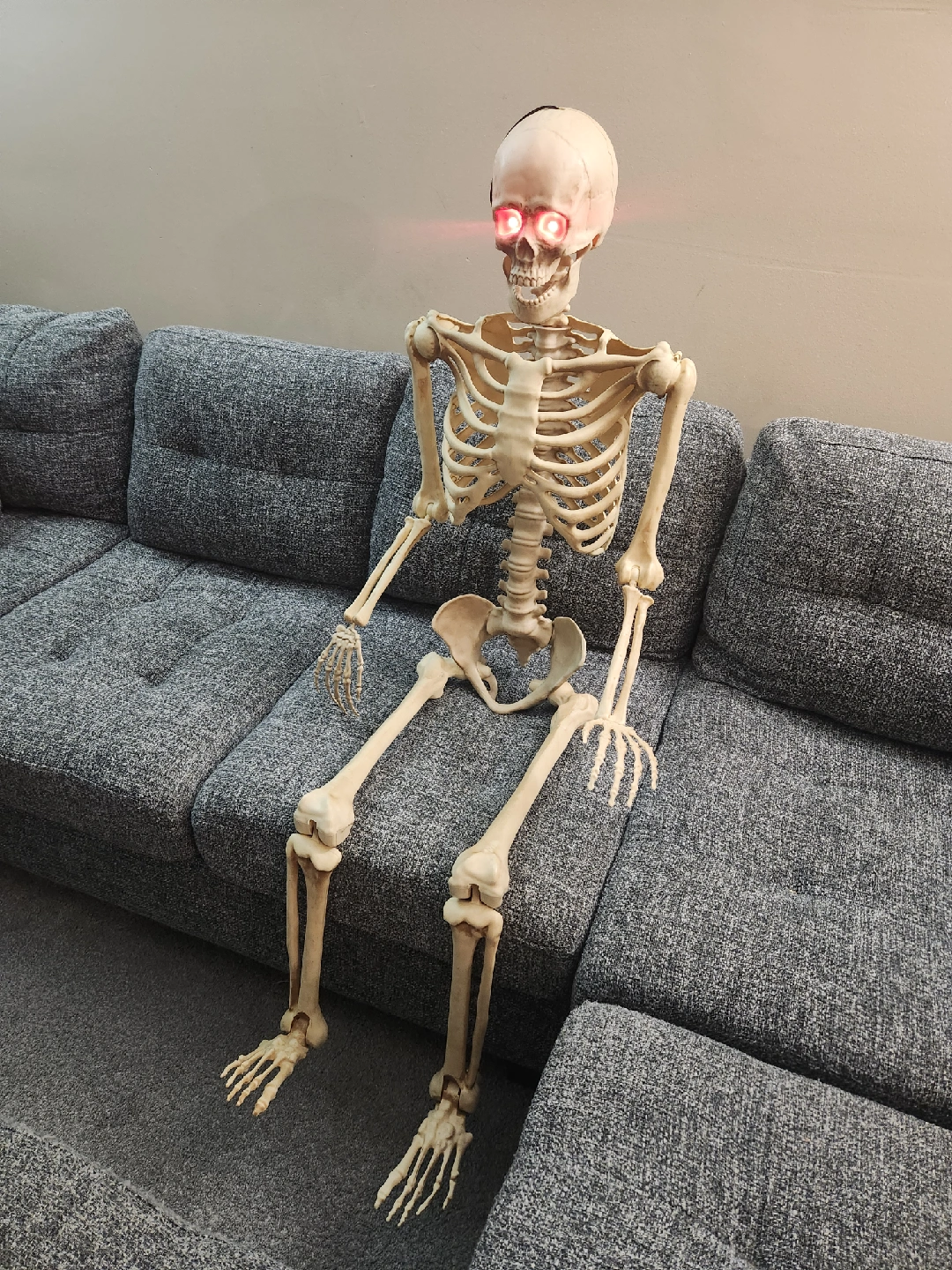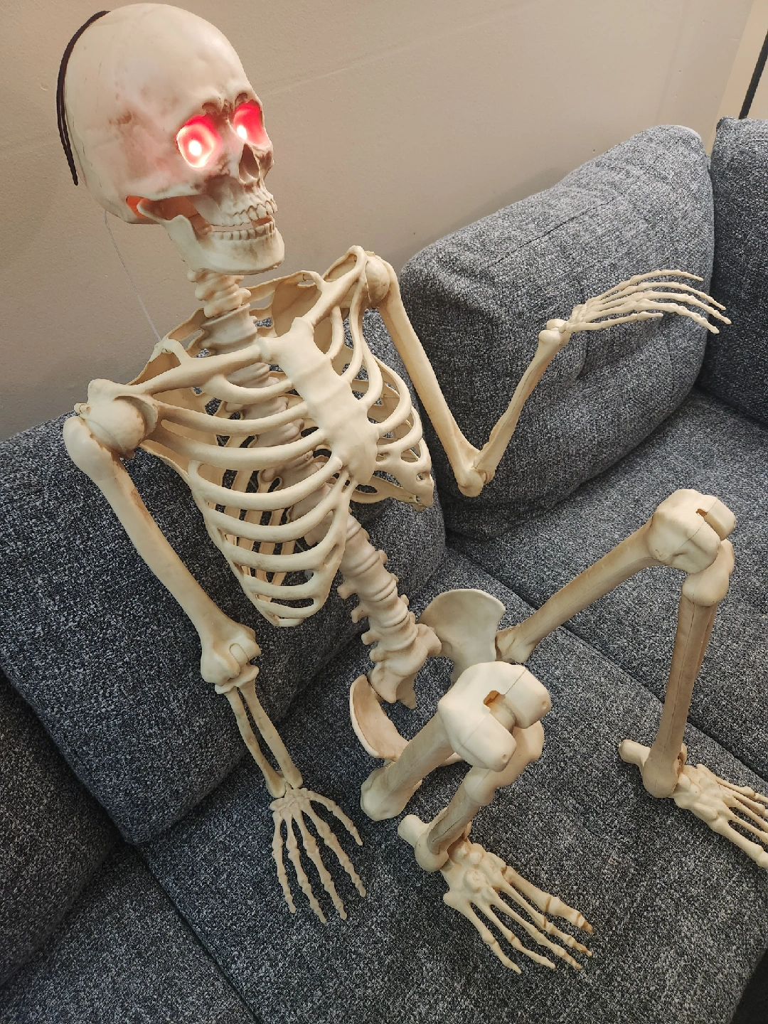 Looking to add some spooky fun to your place? This life-size skeleton is just the thing! It's fully posable, so you can set it up in all sorts of fun positions. Plus, it has light-up eyes for an extra creepy touch! 5ft Poseable/Adjustable LED life-size Halloween Skeleton -Only $40 or Best offer, price is negotiable. *Item is brand new! i am selling because my child is too scared of this skeleton so I have to get rid of it..it is literally too scary, lol! Skeleton is very eerie and realistic and PERFECT for indoor/outdoor decor. *Retails @ Home Depot for $50+, Pls see description attached in photos from home depot-Same item. -Adjustable limbs for customization, hanging string attached (can hang from door or porch or in backyard!) realistic "bones". So eerie and life-like! Glowing red LED eyes. No power cords required, uses AA batteries. Lightweight but very sturdy! -Menacing LED eyes are super sinister! *Pick up @ Bathurst & Steeles, North York.