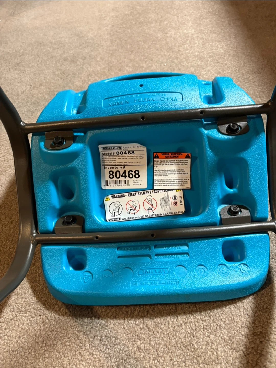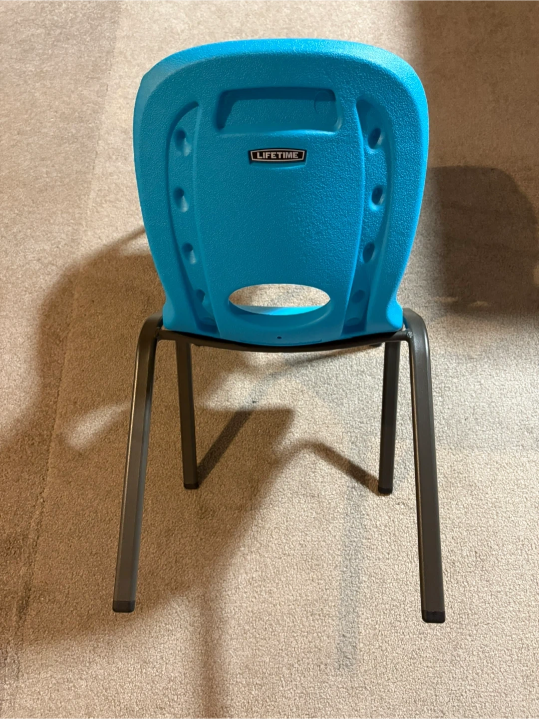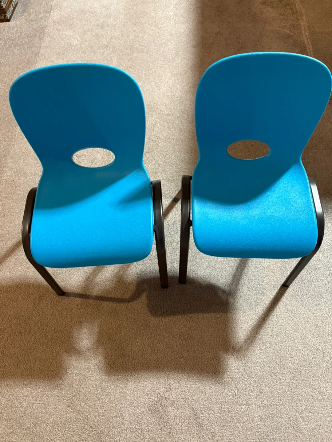 Selling a set of two Lifetime kids chairs, model 80468. They're in great shape and ready for a new home! These chairs are perfect for kids' activities, homework, or just hanging out. The bright blue colour adds a fun touch to any room. They are sturdy and durable, made by Lifetime, so you know they're built to last