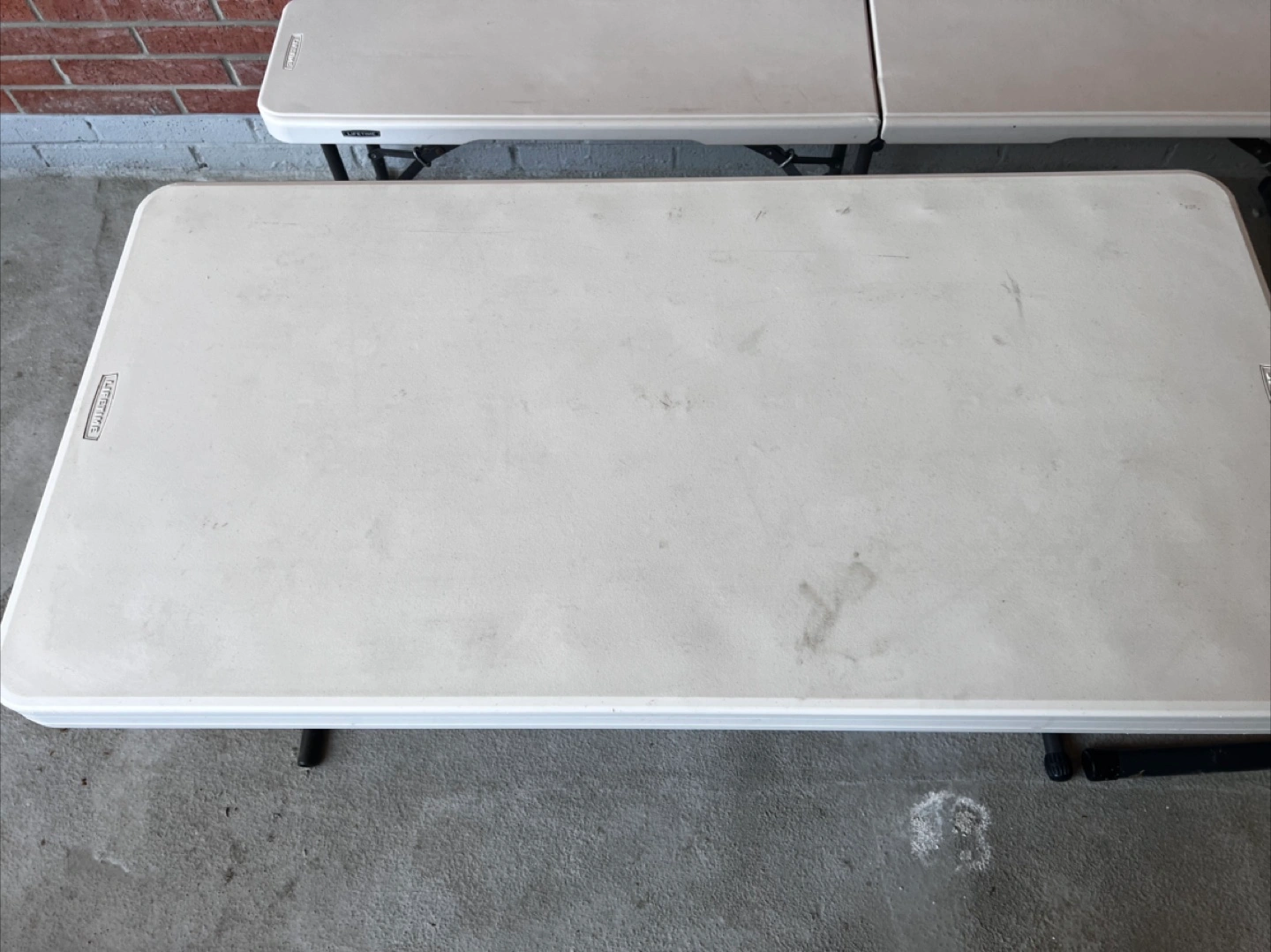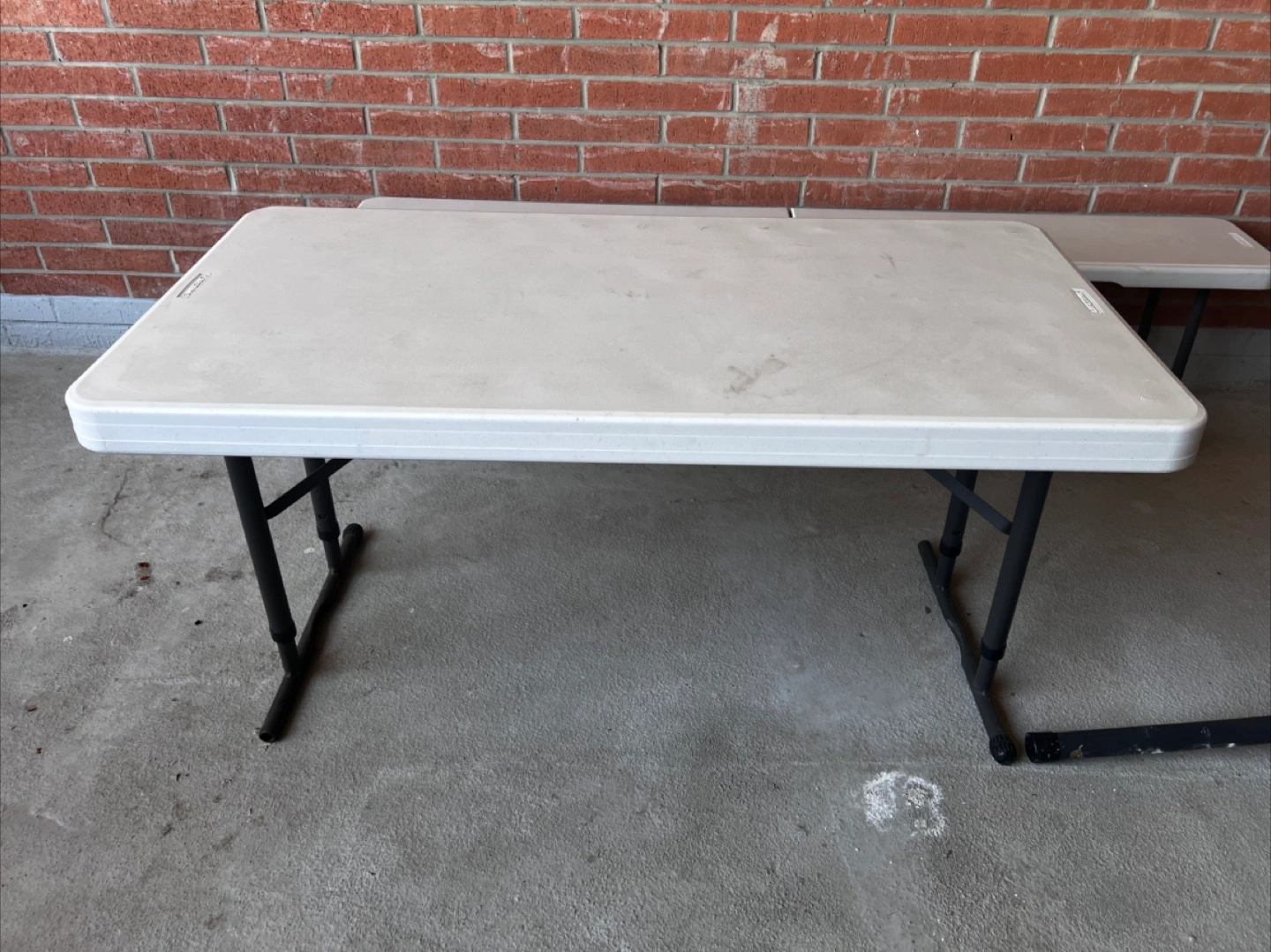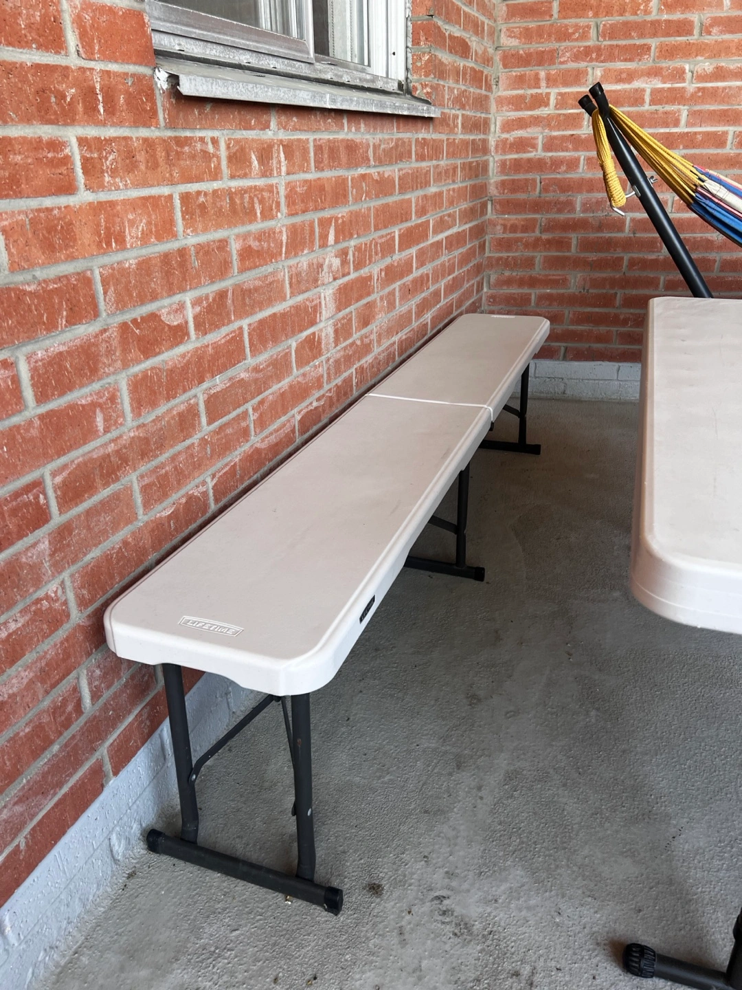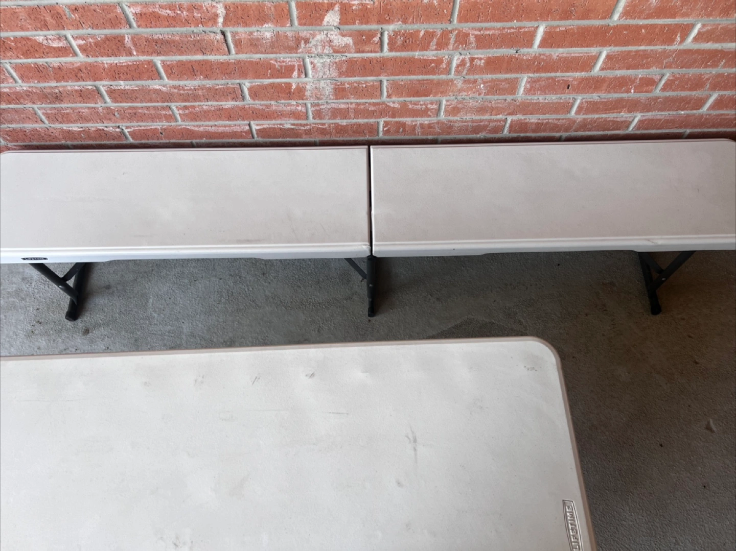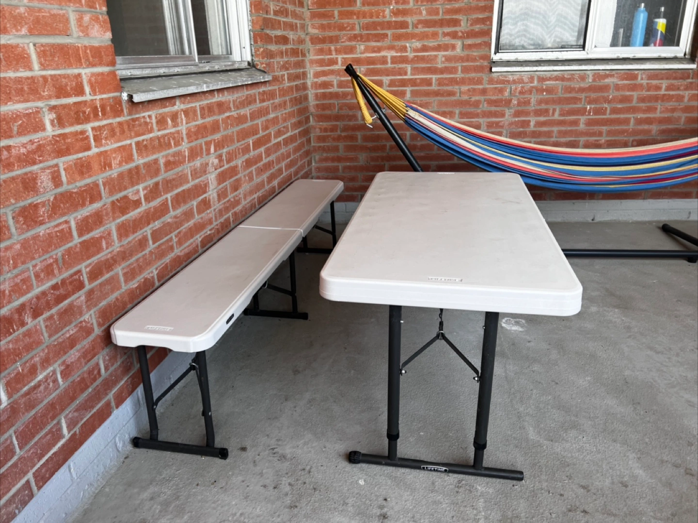 Selling a folding table and bench set from Lifetime! These are great for setting up extra seating for parties or just enjoying the outdoors. They're easy to fold up and store when not in use. Perfect for your next backyard BBQ!