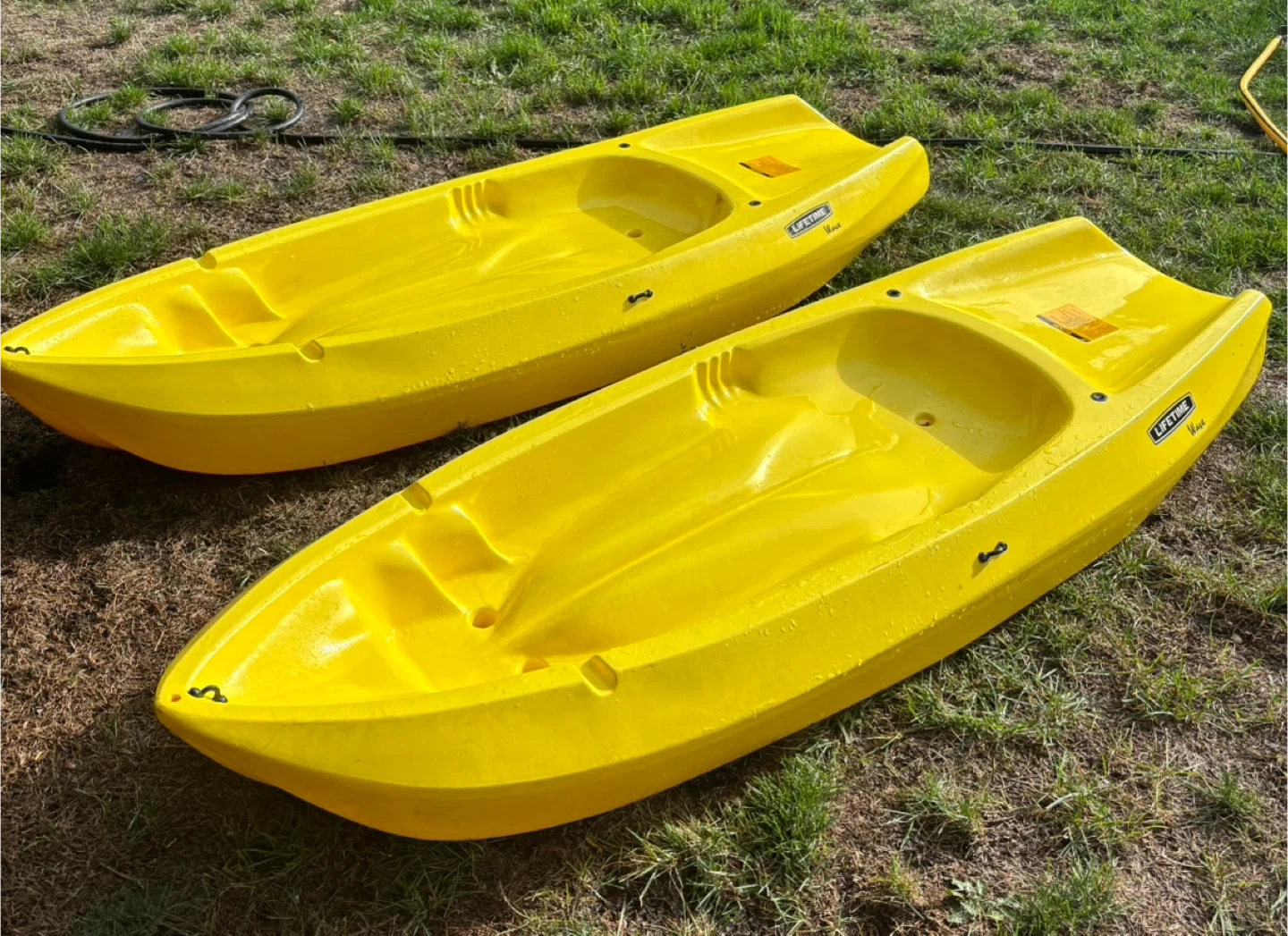 Get ready for some fun on the water with this yellow Lifetime Wave youth kayak! It's perfect for kids who are just starting to explore kayaking. It has a comfortable seat and a stable design, making it easy for young paddlers to maneuver. Also comes with two paddles! Selling both for $100 and individually $50 Kayak 6ft long 2 ft wide Paddles 6ft long Holds up to 200lbs Fits people typically 5ft to 5’8
