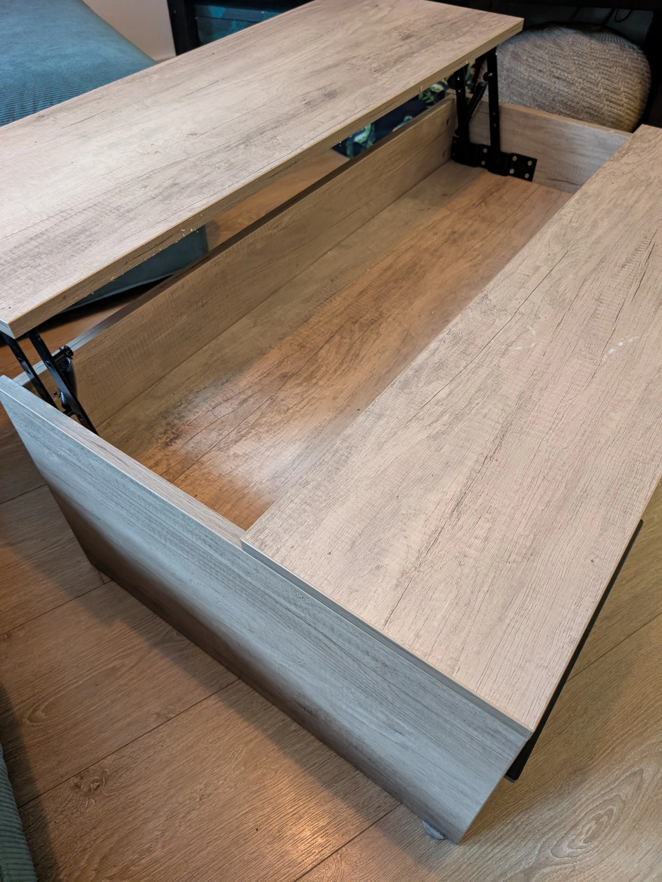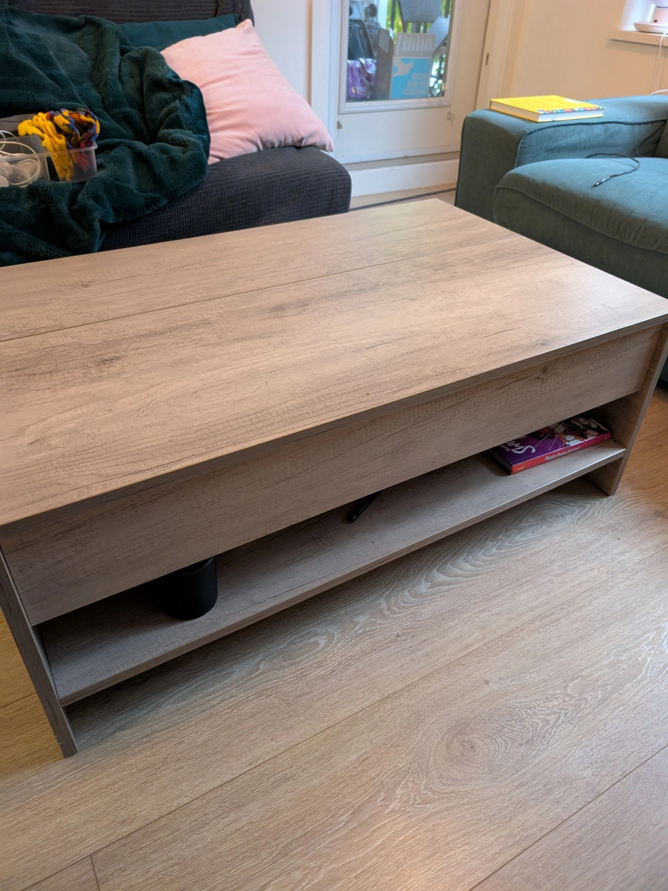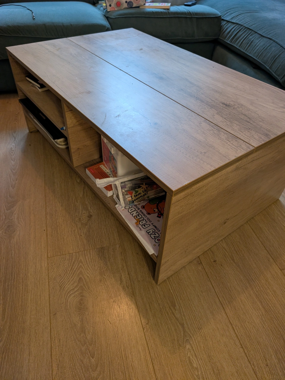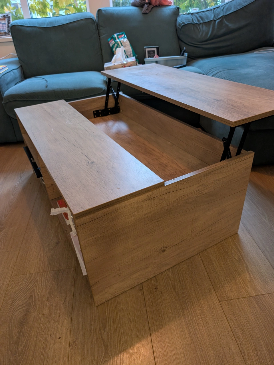 Selling a lift top coffee table in good condition. It's a great piece for any living room, offering both style and functionality! The lift-top design makes it easy to work or dine from the comfort of your couch, while the hidden storage compartment helps keep your space tidy.