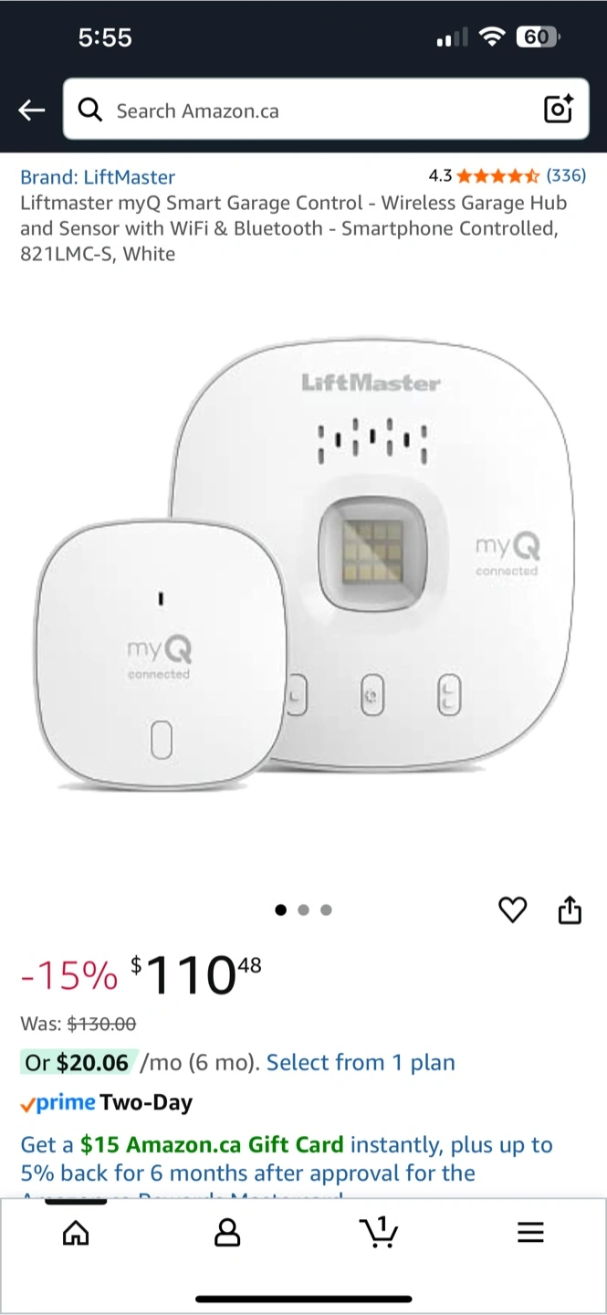 Selling a BRAND NEW Liftmaster myQ Smart Garage Control! It's a wireless garage hub and sensor with Wifi & Bluetooth. It's smartphone controlled, making it super convenient. Convert your regular garage door opener to a smart one.
