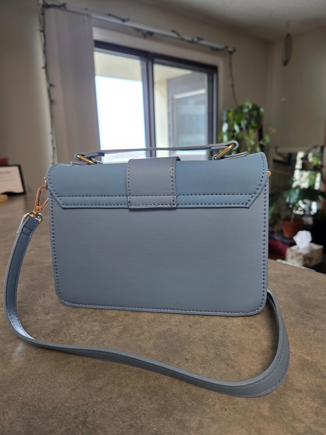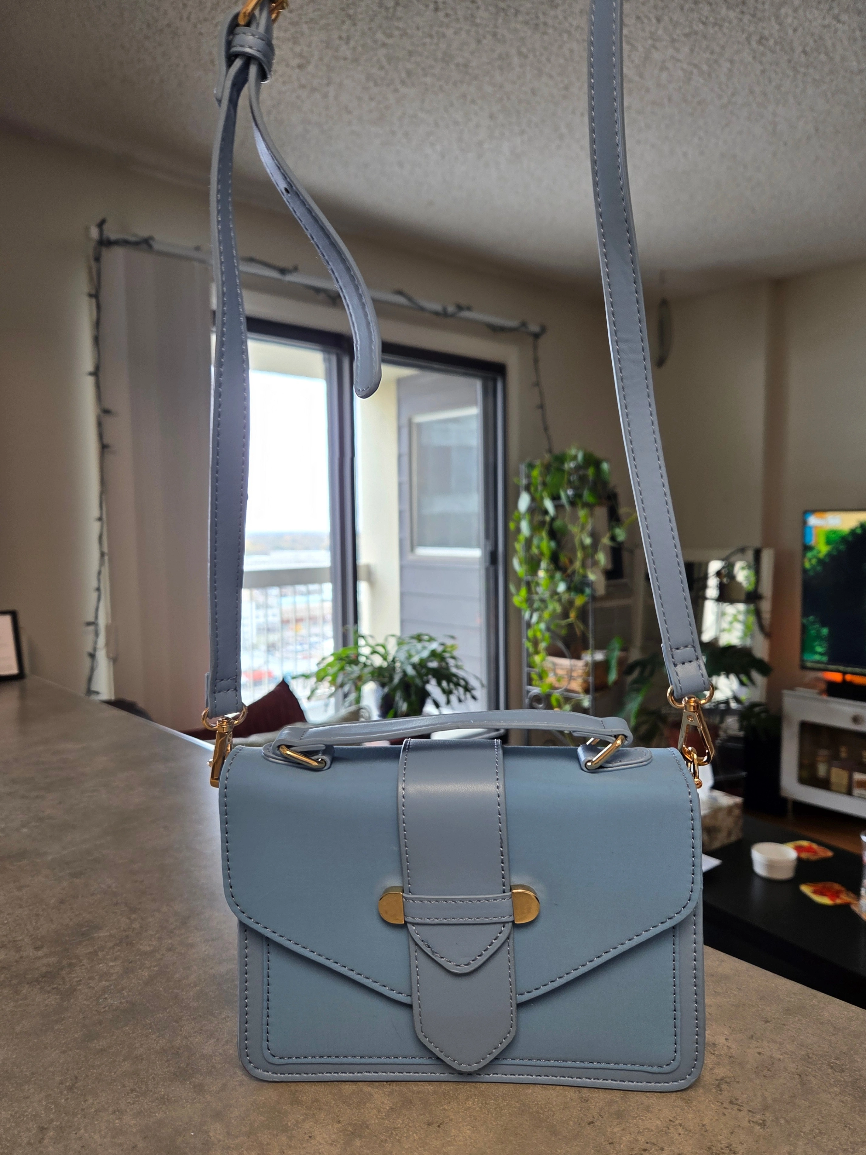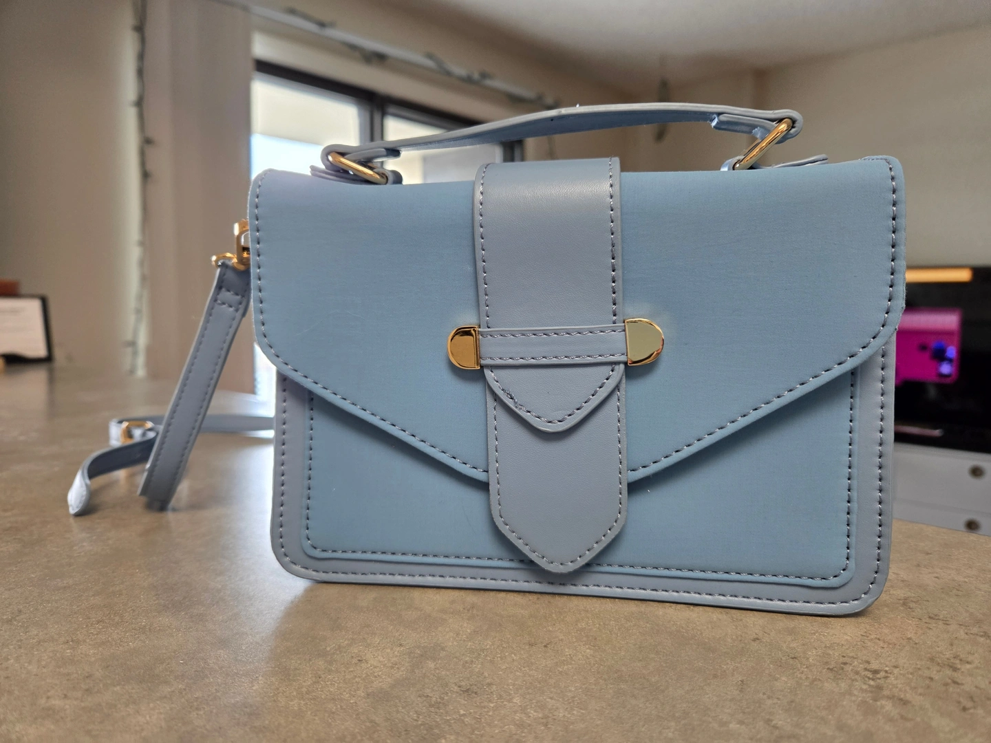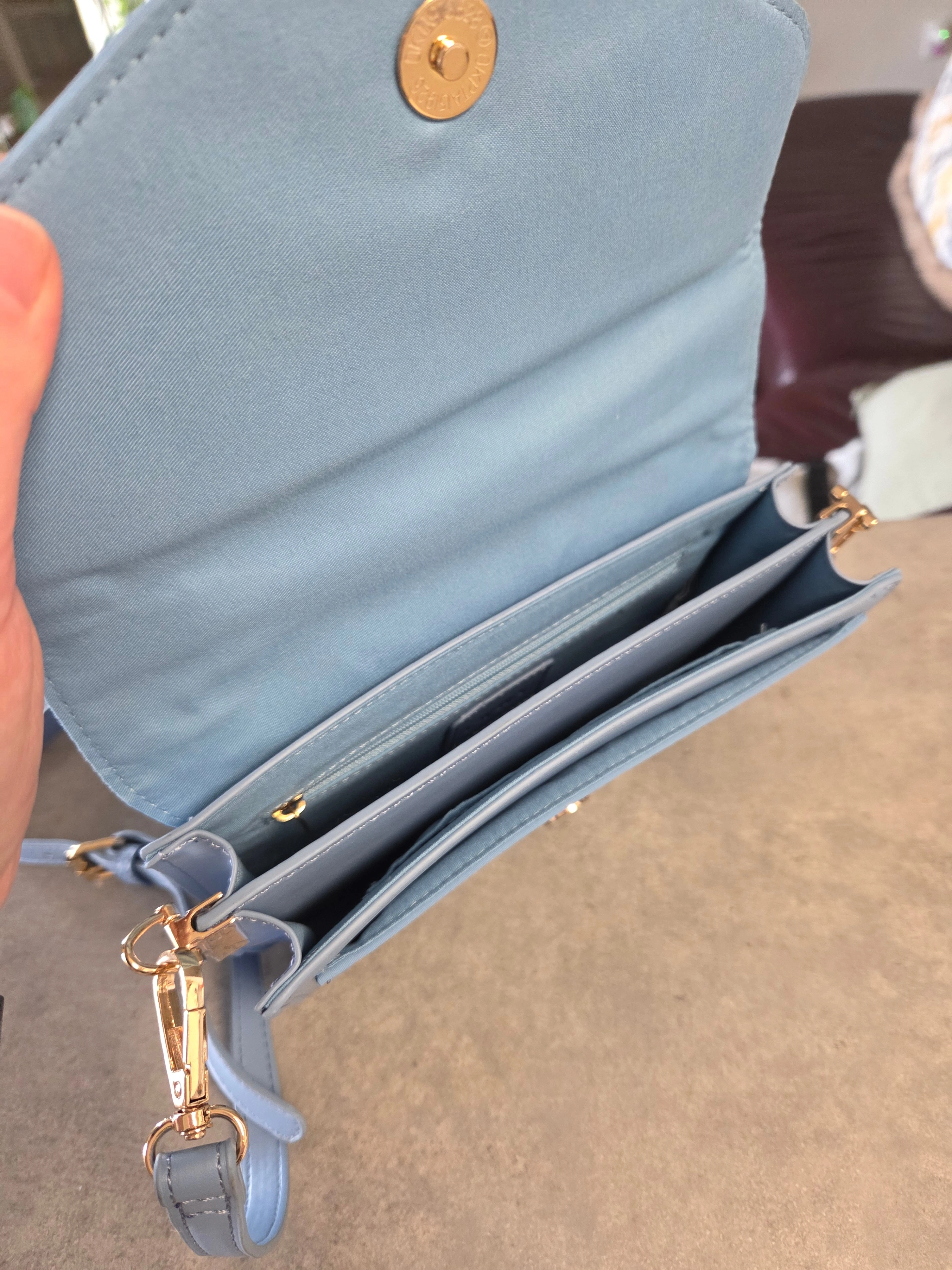 Light Blue Flap Purse and/or Shoulder Bag with Removable Strap