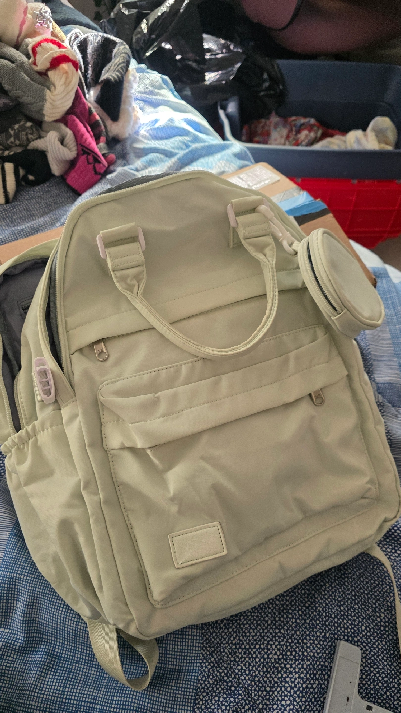 Selling a light green backpack that is in great condition! I never actually used it didnt fit my 16inch laptop but it can fot a 15inch laptop Comes with a cute matching airport holder attached. Perfect for school, work, or travel. It features multiple compartments and adjustable straps for comfortable wear Must come pick up
