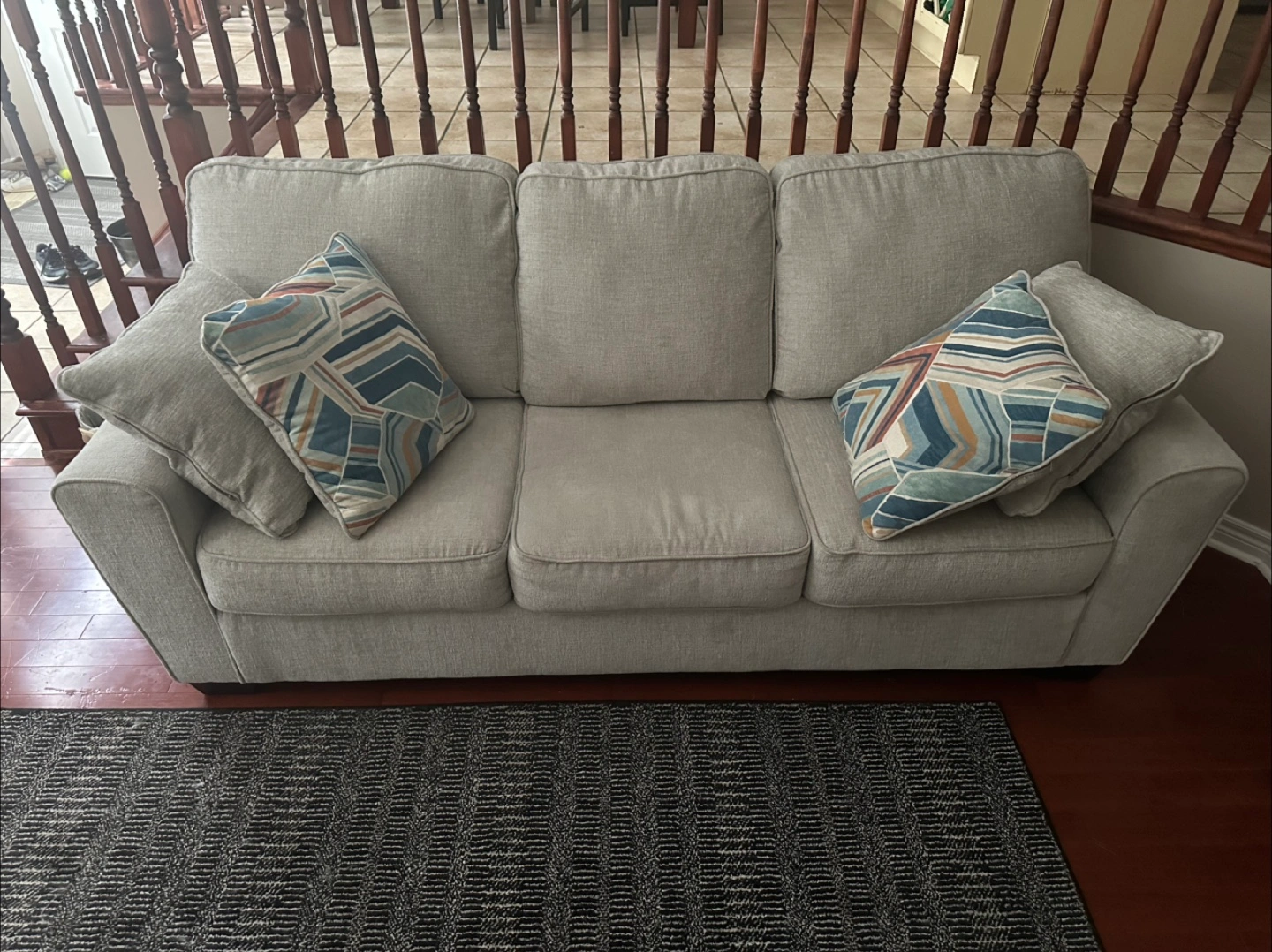 Selling my 3-seater couch. It has barely been used and is only a couple of months old. It comes with pillows as well. There are no scratches or significant markings on it. PRICE IS NON-NEGOTIABLE.