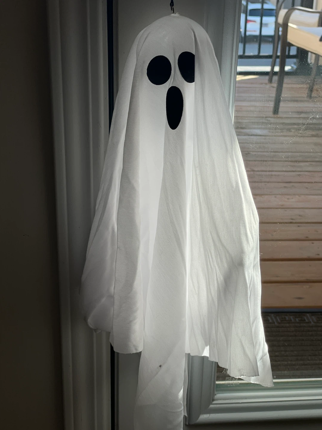 Spooky season is coming up! Get ready with this cute hanging ghost decoration. It's in great condition and ready to add some fun to your Halloween decor