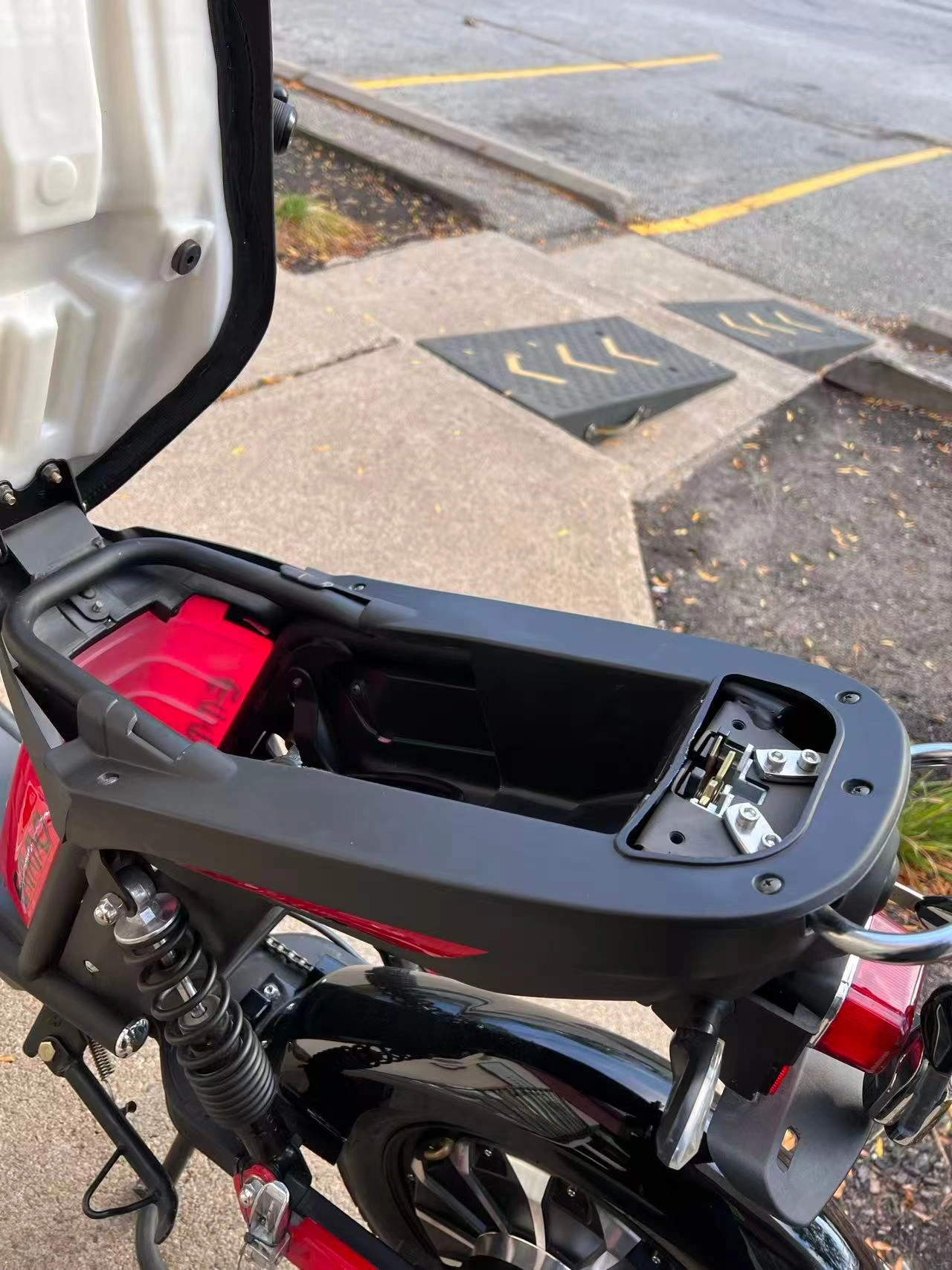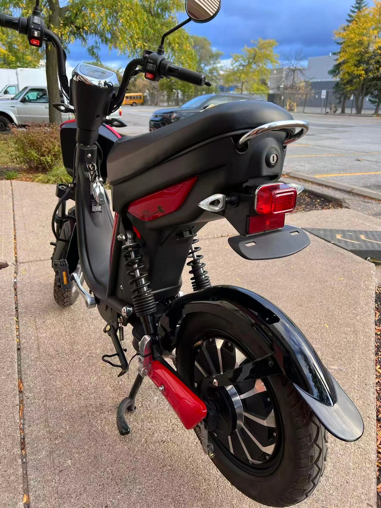 The EMMO Urban T2 Red is a lightweight, compact, and street-legal electric scooter-style e-bike designed for daily commuting and city rides. With its removable lithium battery, efficient QS hub motor, and dual-brake system. Limited stock – first come, first served! Highlights: Lightweight & Compact: Only 75 kg — easy to handle, park, and store. Long Range Options: Removable 48 V 30 Ah or 50 Ah lithium battery — up to 100 km per charge. Practical Storage: Front storage box included + optional rear tail box Load Capacity: 160 kg (350 lbs) Charging Time: 3 – 10 hours (depends on battery size) Battery & Range (options): 48V/30Ah Li Removable (Range 55-65km) $2,199.00 Out-the-door price (TAX included) $2,484.87 48V/50Ah Li Removable (Range 90-100km) $2,899.00 Out-the-door price (TAX included) $3,275.87 WITH tailbox and rear rack additional $149 Financing available from $140, $180, or $250 per month — check your eligibility in-store. WARRANTY Frame: 2 years (up to 6000km) Motor: 1 year (up to 6000km) Controller: 1 year (up to 6000km) Battery & Charger: 6 months Other components: 1 year (up to 6000km) Visit Us: Unit #6, 1224 Dundas Street E, Mississauga, ON L4Y 4A2 Phone : 905-281-3666 Test Ride : Ok (Bring your Photo ID)