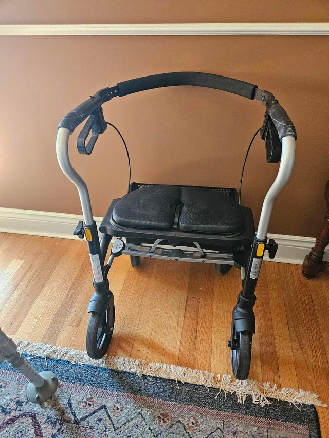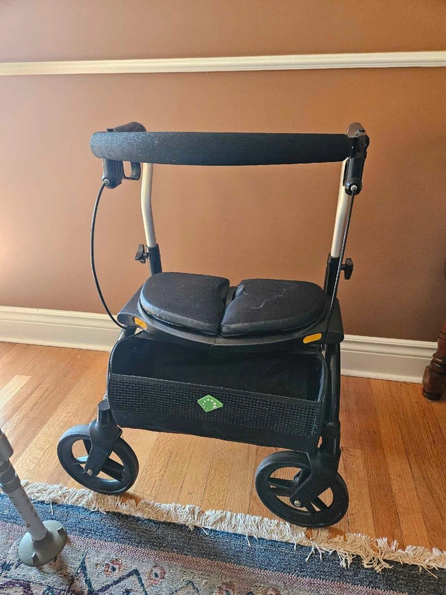 Gently used rollator walker in excellent condition. Features a comfortable padded seat, sturdy backrest, hand brakes, and folds easily for storage or transport. Perfect for seniors or anyone needing extra support and mobility. Clean, smoke-free home.