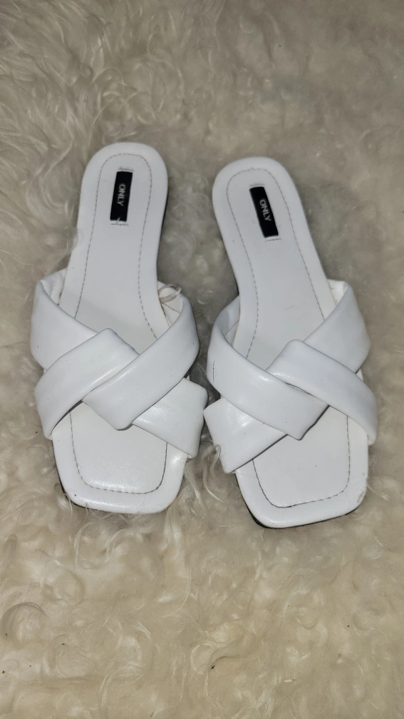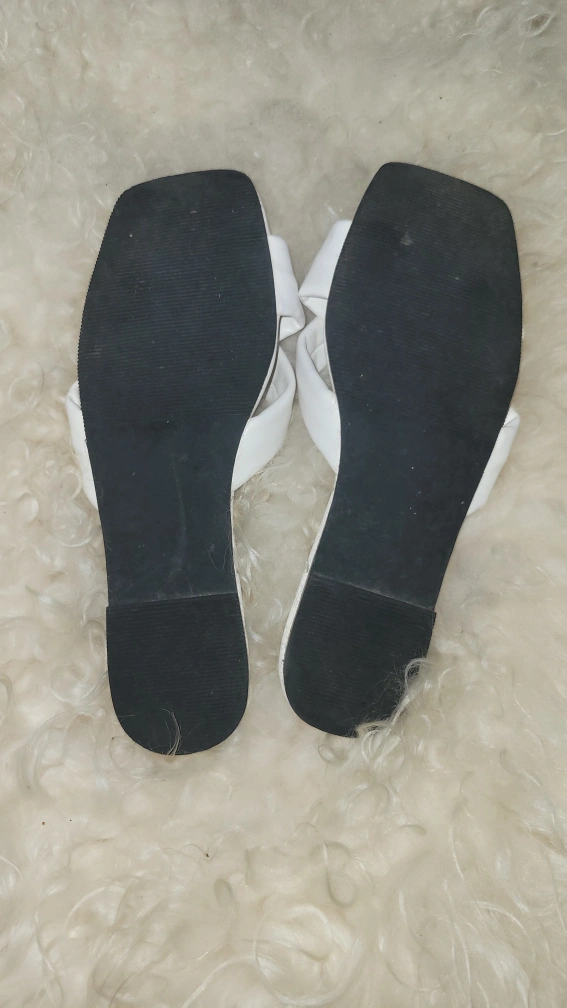 Selling a pair of a bonded leather white sandals. They're super cute and in great condition! label says size 6.5, but more like 7 to 7.5