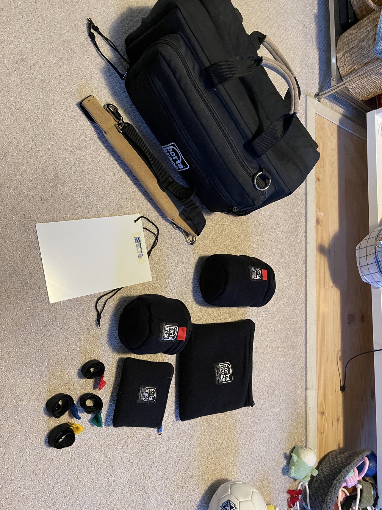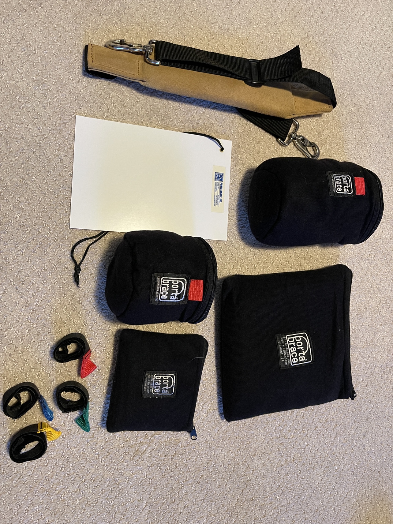 Like new porta brace CS DV3R camera bag. A well-known manufacture of professional camera bags. Includes: Comfortable shoulder strap White card Soft pouches Cable management straps Two padded lens cases Dimensions Interior: 18 x 7.0 x 8.5" (45.72 x 17.78 x 21.59cm) (LxWxH) Exterior: 20 x 10 x 9.0" (50.8 x 25.4 x 22.86cm) (LxWxH) Price is $250