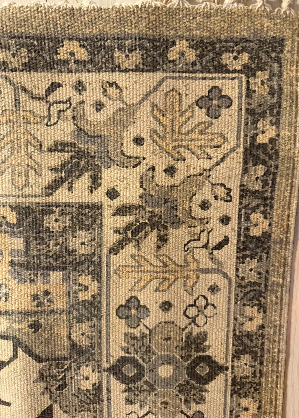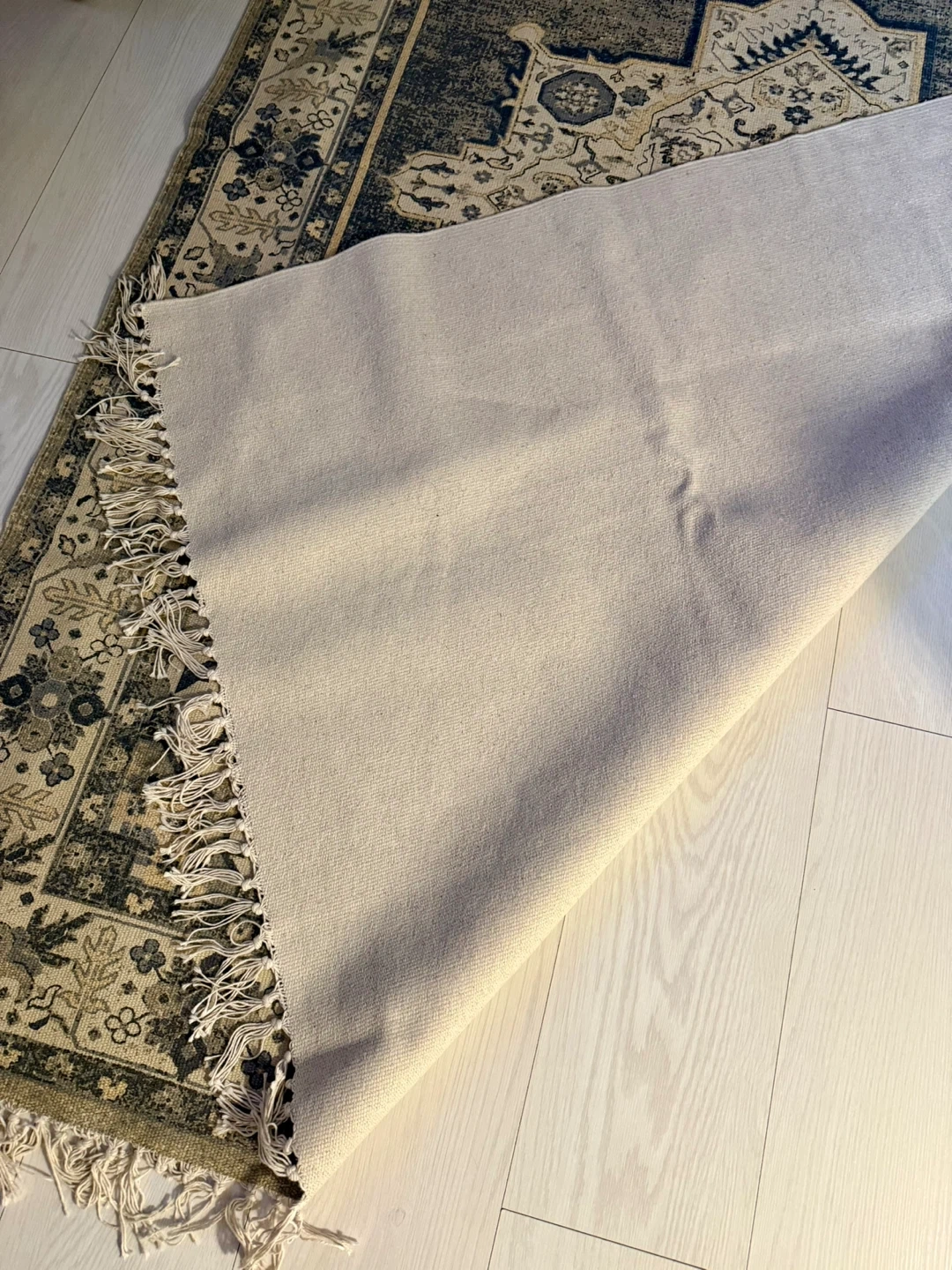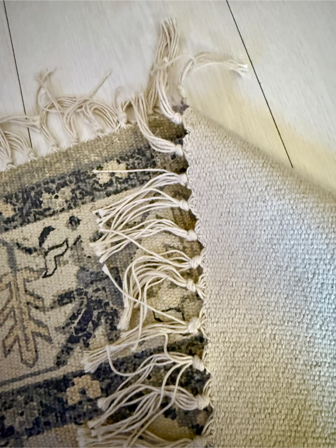 Selling a beautiful H&M HOME area rug with a detailed pattern. It’s in excellent condition and adds a stylish touch to any room. The neutral tones make it easy to pair with any décor. Material: 100% cotton Measurements: 55in x 79in / 140cm x 200cm Details: • Professional carpet cleaning • Vacuum regularly • Washing forbidden • Do not bleach • Dry flat • Do not iron • Do not dry clean