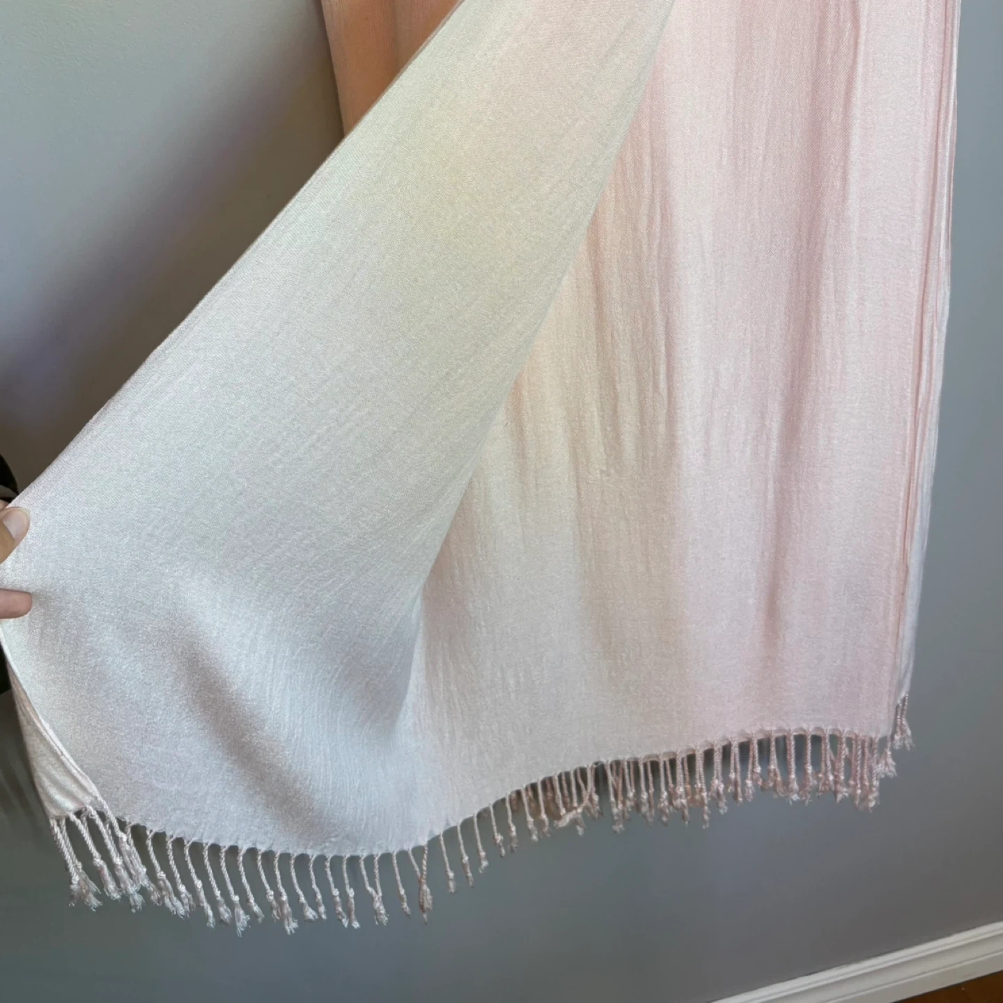 Add a touch of elegance to your wardrobe with this Lily Morgan light pink super soft rectangular scarf with fringe. It's in excellent condition and feels wonderful against the skin, perfect for adding a subtle splash of colour to any outfit. Here are the details: Brand: Lily Morgan Shape: Rectangular Era: Modern Color: Light Pink Print: Solid Material: Super soft Condition: Excellent used condition Size: 74”x 28.5” See photos for measurements. Flaws: None noted Cross posted. If you see this ad, it's still available! Don't miss out on this stylish and versatile accessory. Winnipeg - Pick up only (Located 2 blocks west of Polo Park). Shipping options available through other platforms message me for details.