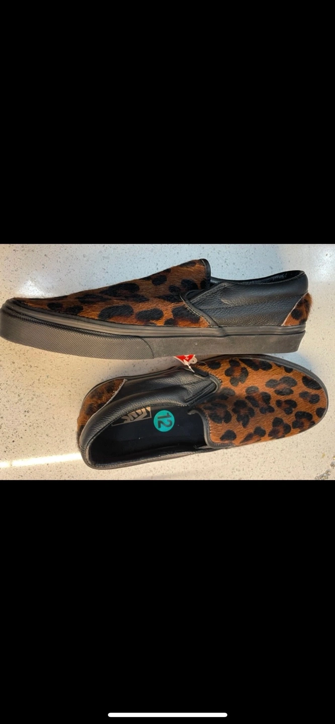 Limited edition Vans Leopard Slip-On men’s size 12 brand new. Actual cow hair You can pick up by Carlton and Jarvis area Serious enquiries only please. Too many people wasting my time and low balling and not following up.