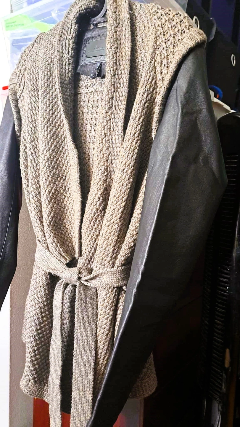 Line Women Luxury Sweater Cardigan w/ Genuine Leather Sleeves