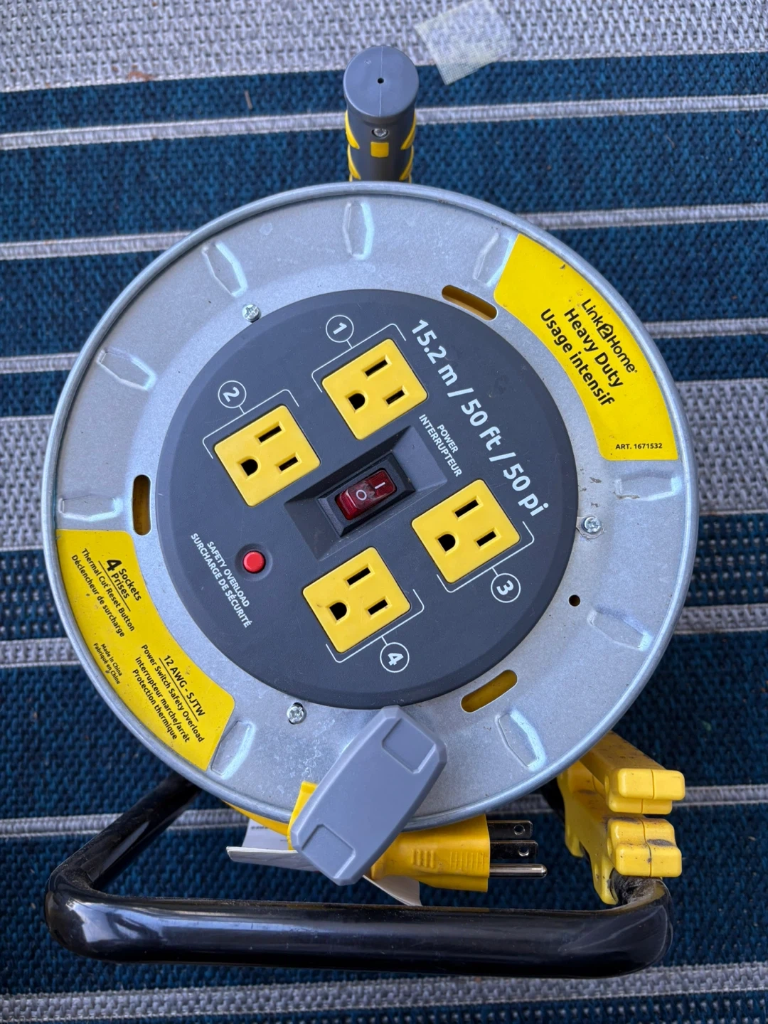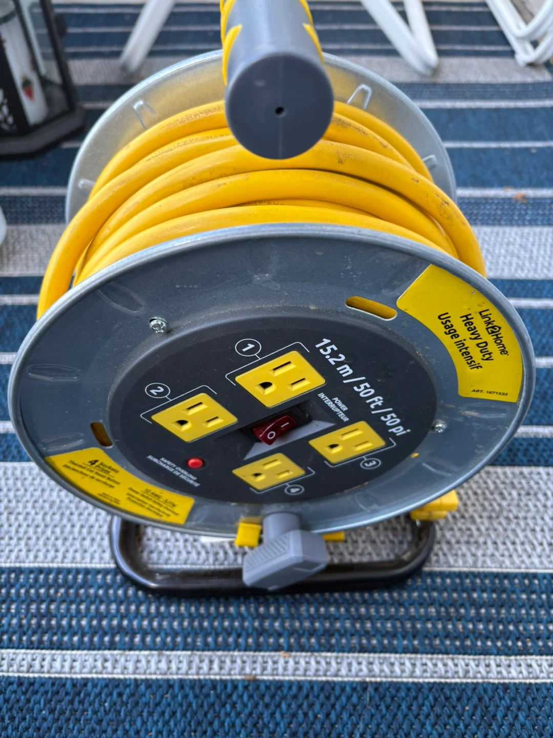 Selling a Link@Home heavy-duty extension cord reel! It's 50 feet long, perfect for outdoor or indoor use. It's in great shape and ready for your next project.