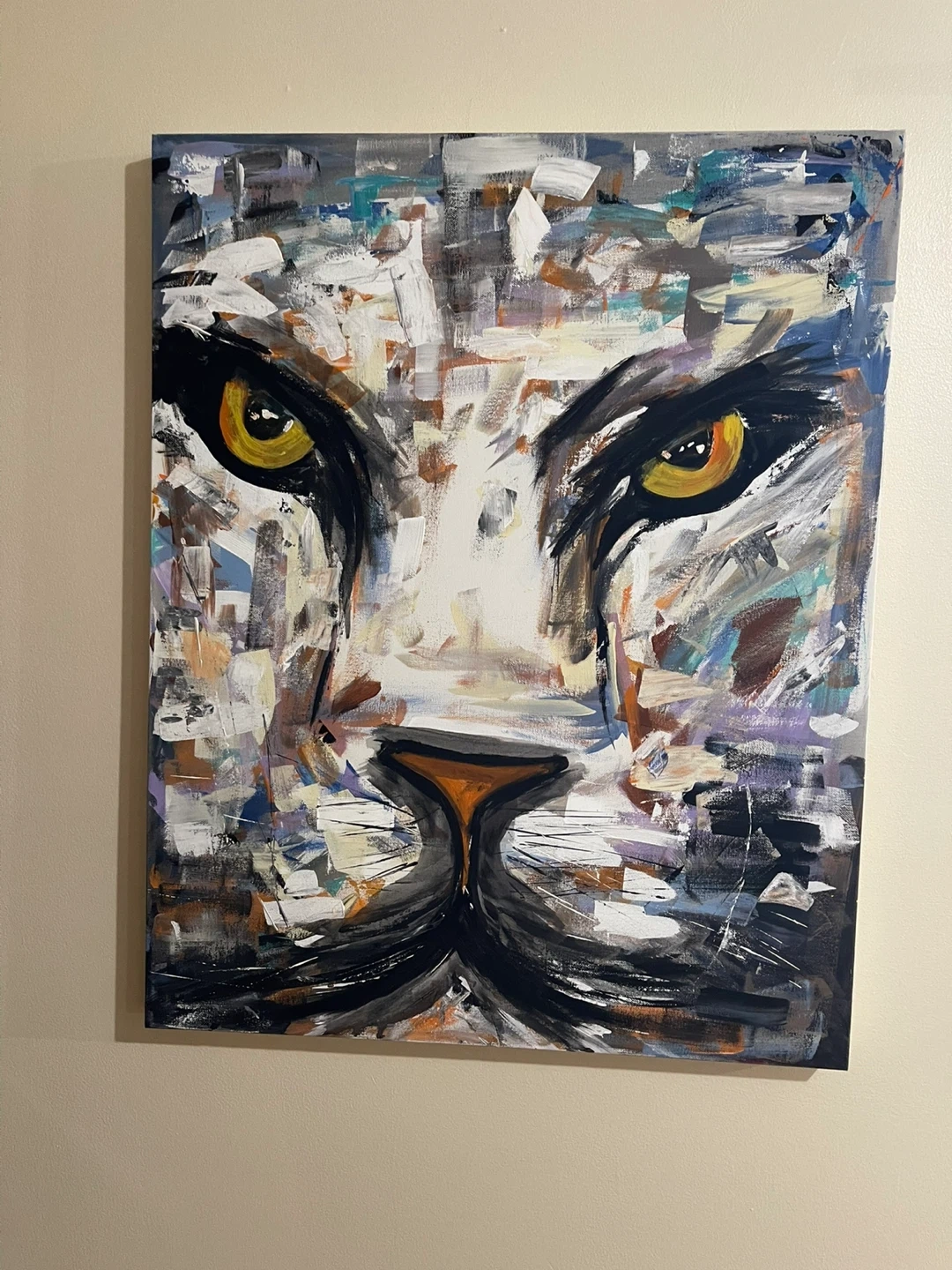 My Personal Art acrylic canvas painting Unique abstract painting of a lion's face. The colours and textures are really eye-catching! Perfect for adding a bold statement to any room in your home