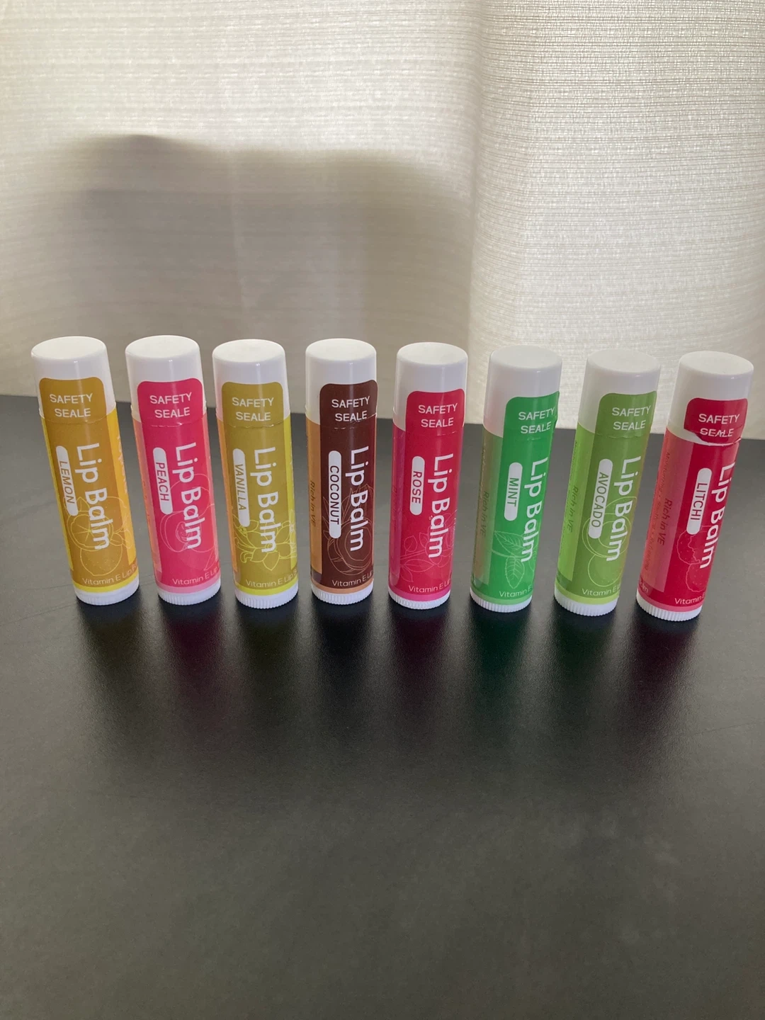 I have a set of lip balms to give! Flavors include Lemon, Peach, Vanilla, Coconut, Rose, Mint, Avocado, and Lychee. Each lip balm is enriched with Vitamin E for extra moisturizing