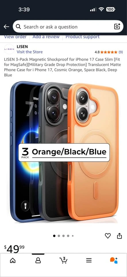 BNIB LISEN 3-Pack Magnetic Shockproof iPhone 17 Case 3 Colours: - Cosmic Orange - Space Black - Deep Blue Purchased for $49.99. Selling for $30 FIRM #191 Pickup near 10800 Bayview Avenue, Richmond Hill If listing is up its still available